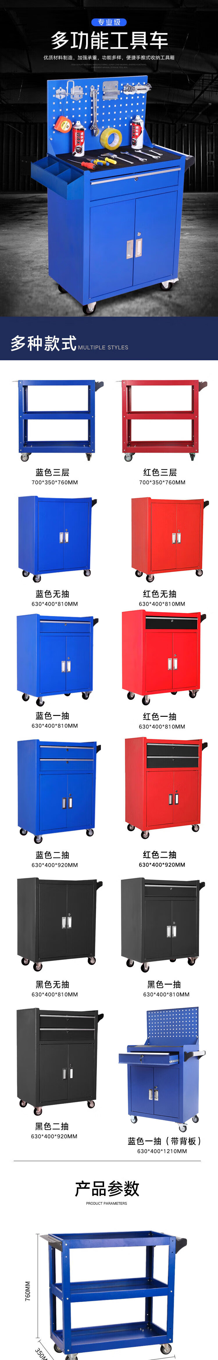 Wenstan maintenance auto repair tool cart blue + back plate multi-functional iron tool cabinet 1 car WST105