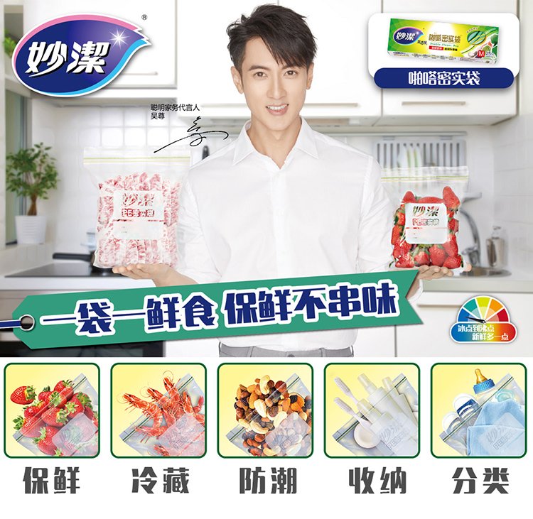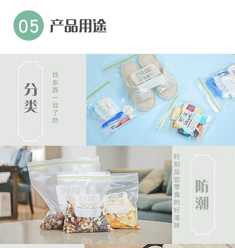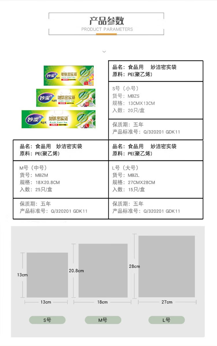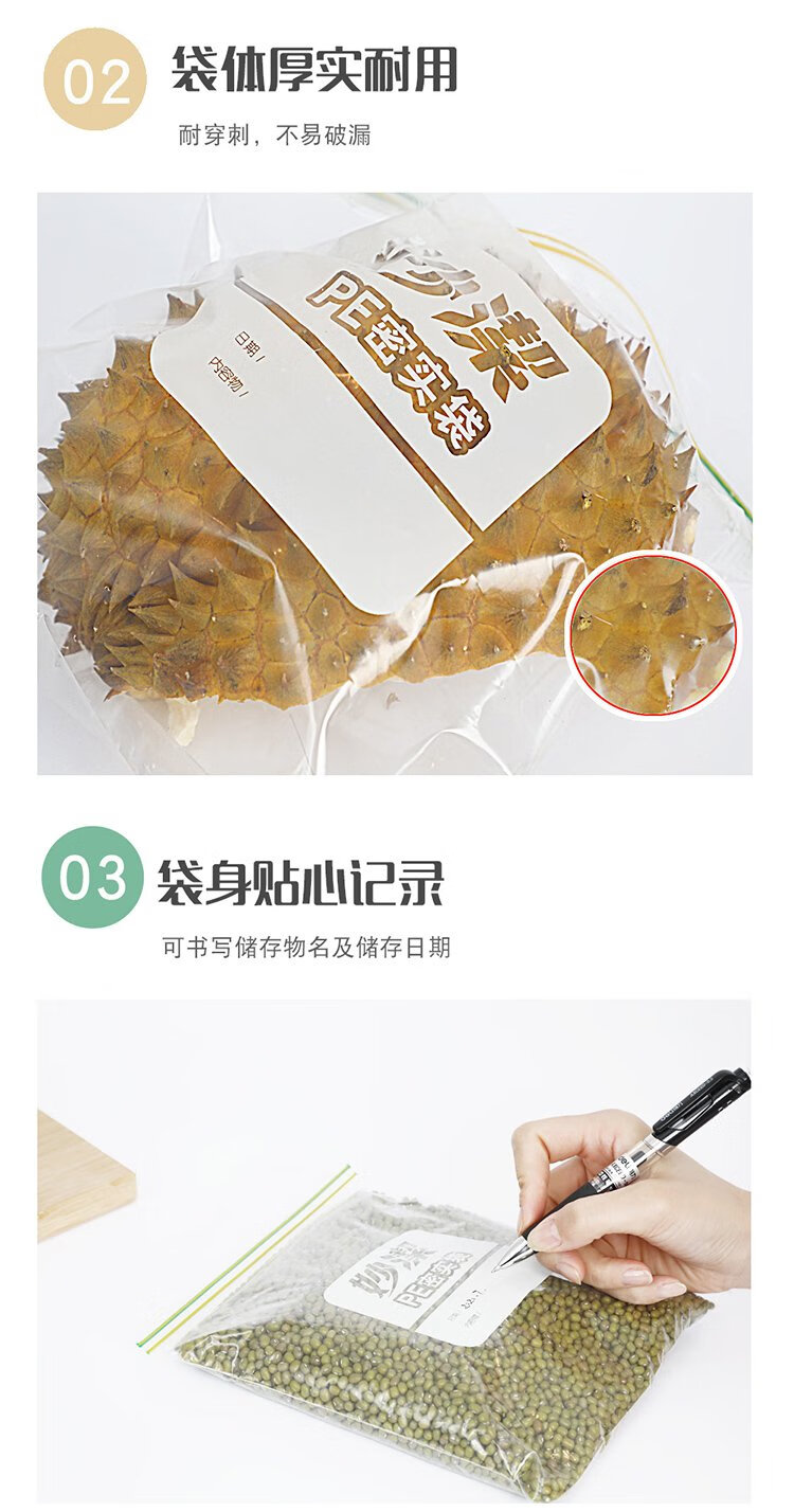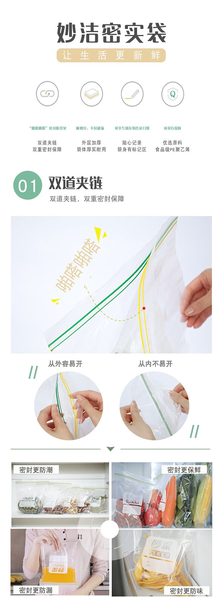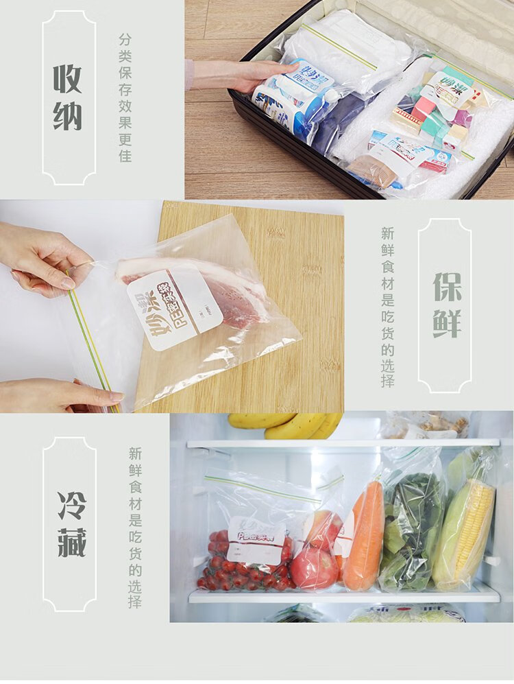 Miaojie sealed bag combination pack, large, medium and small sizes 15+25+20 pcs, 60 pcs in total, thickened food grade fresh-keeping ziplock bags