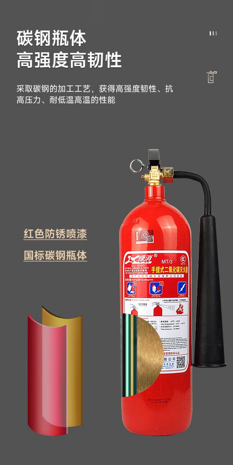 Green fire commercial portable carbon dioxide fire extinguisher 3KG fire equipment room precision instrument 3kg distribution box