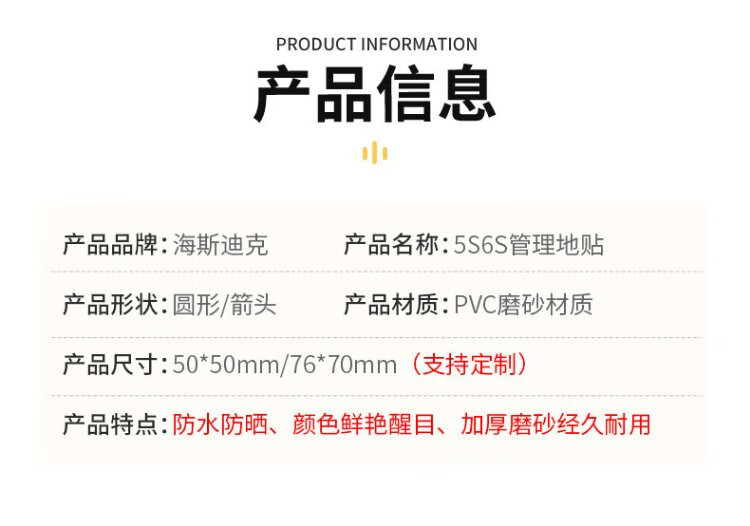 Hasdick Beijing Warehouse Distribution 5S6S Management Positioning Stickers (round 50 pieces) Floor Sticker Marking Diameter 50mm Yellow HKD-9