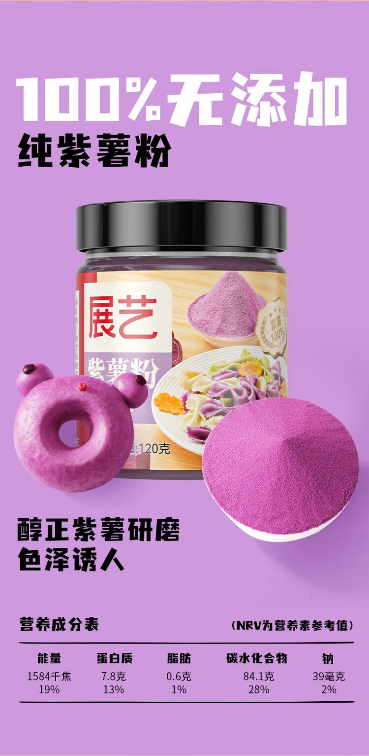 Zhanyi pure purple potato powder 120g colorful dumplings snowflake crisp toast colorful taro balls and mashed fruit and vegetable powder food coloring materials
