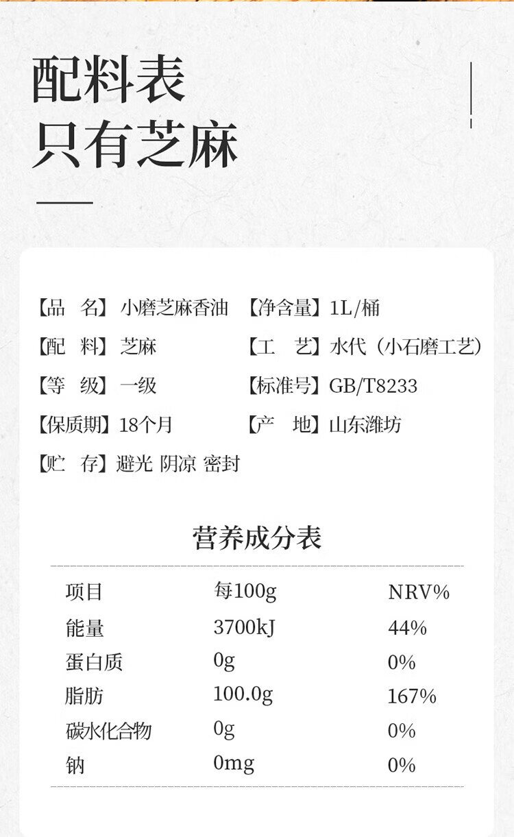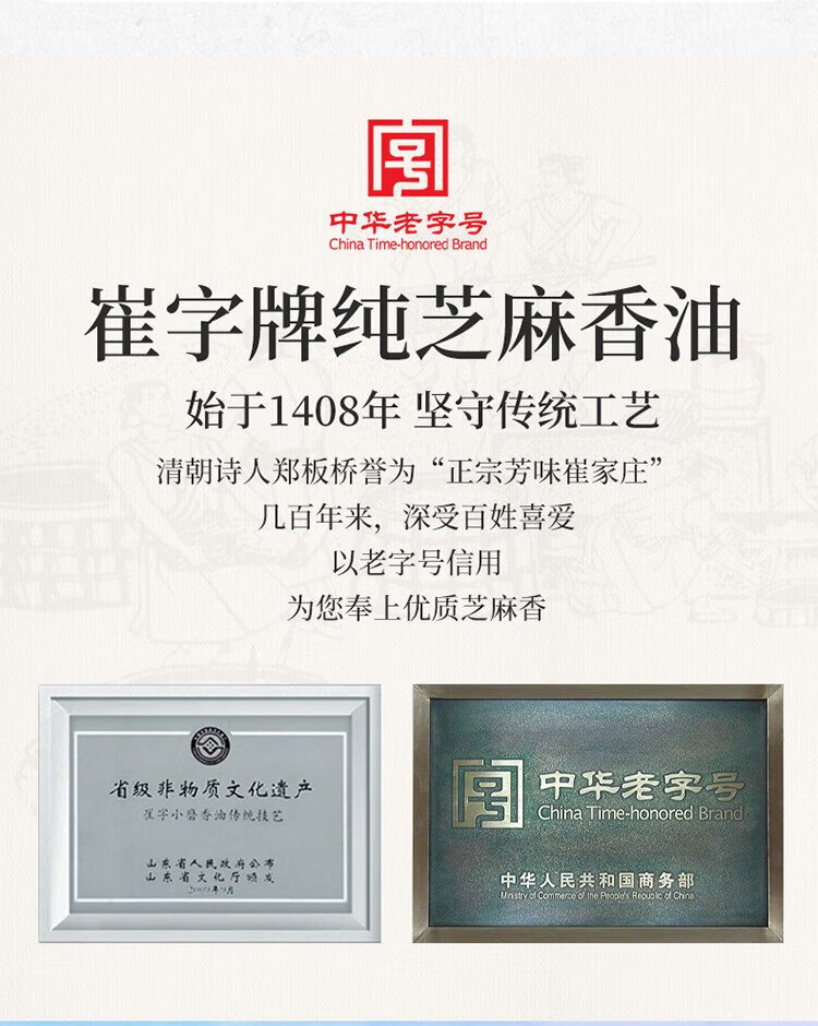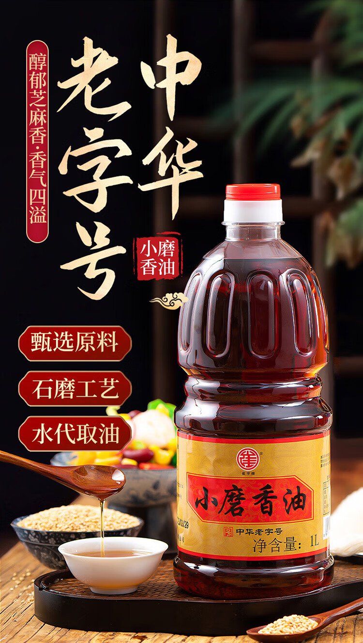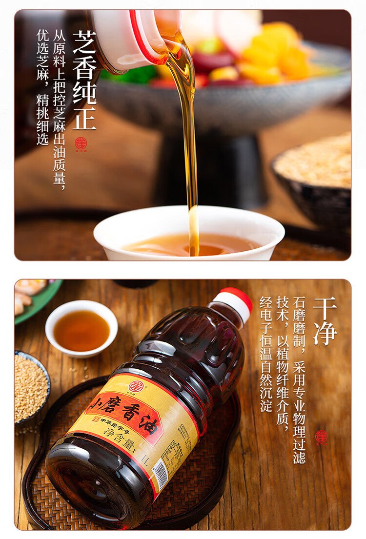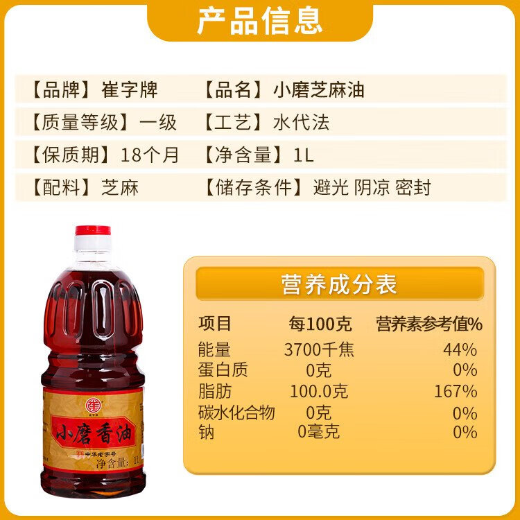 Cuizi brand small ground sesame oil 1L barrel, traditional water-based sesame oil, cold salad, hot pot oil dish, dipping sauce, Chinese time-honored brand