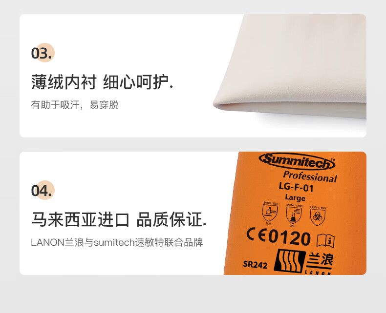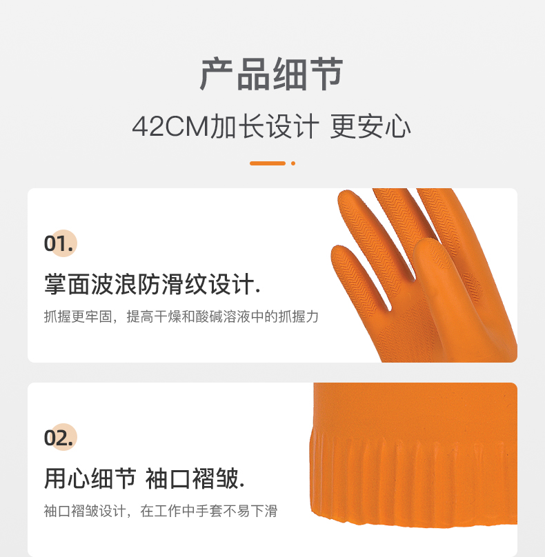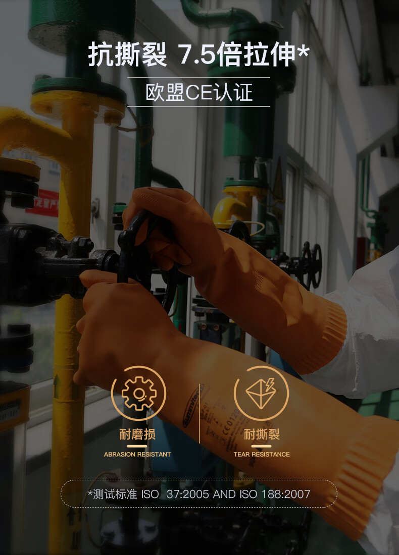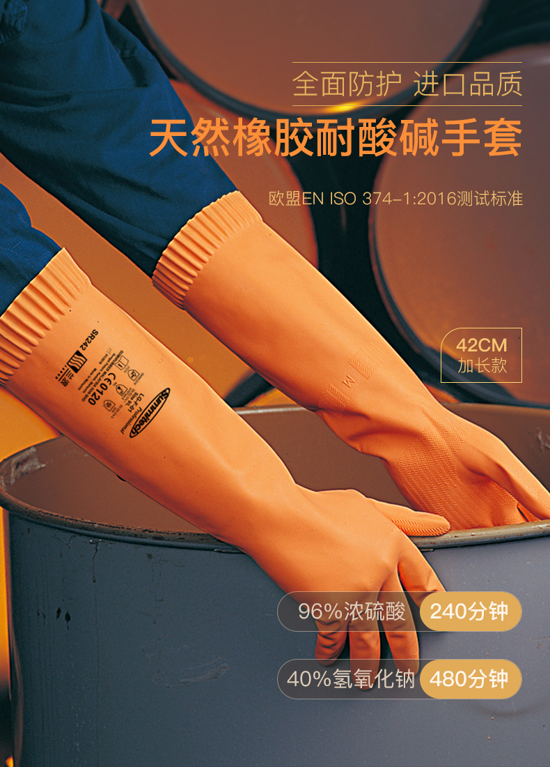 Lanlang SR242 imported natural rubber acid and alkali resistant industrial gloves chemical-proof labor protection laboratory extension 42cm L