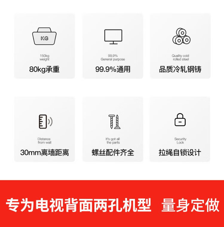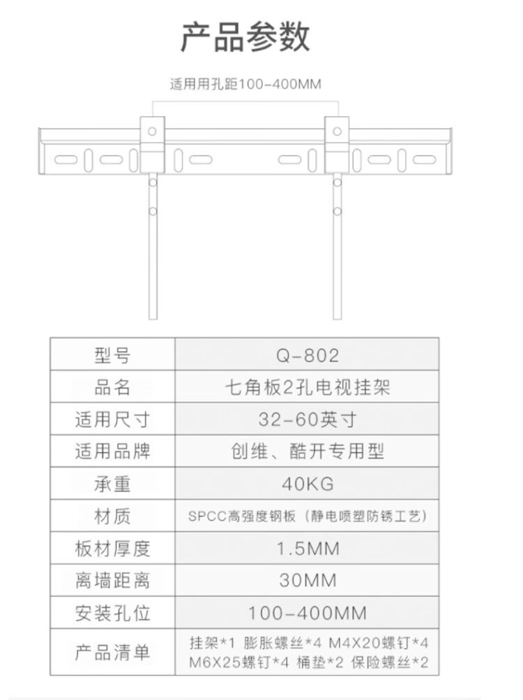 Heptagonal plate Q-802 (32-60 inches) TV mount with 2 holes thickened LCD TV bracket fixed wall mount suitable for Skyworth cool open two hole TV