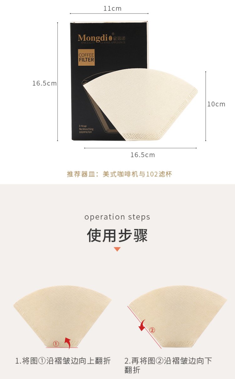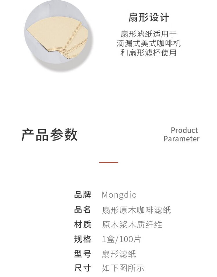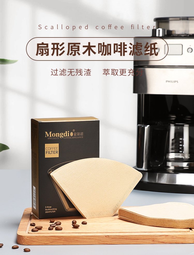 Mongdio coffee filter paper fan-shaped drip American coffee machine hand-brewed coffee filter paper 102 type 100 pieces