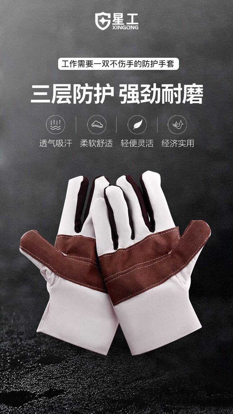 Xinggong (XINGGONG) canvas gloves with leather palms, strong wear-resistant handling, railway maintenance and labor protection work gloves, 10 sets XGS-F8