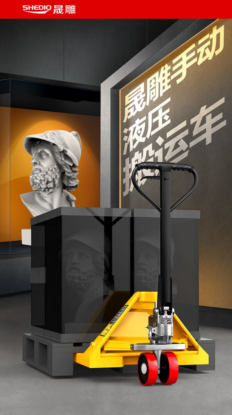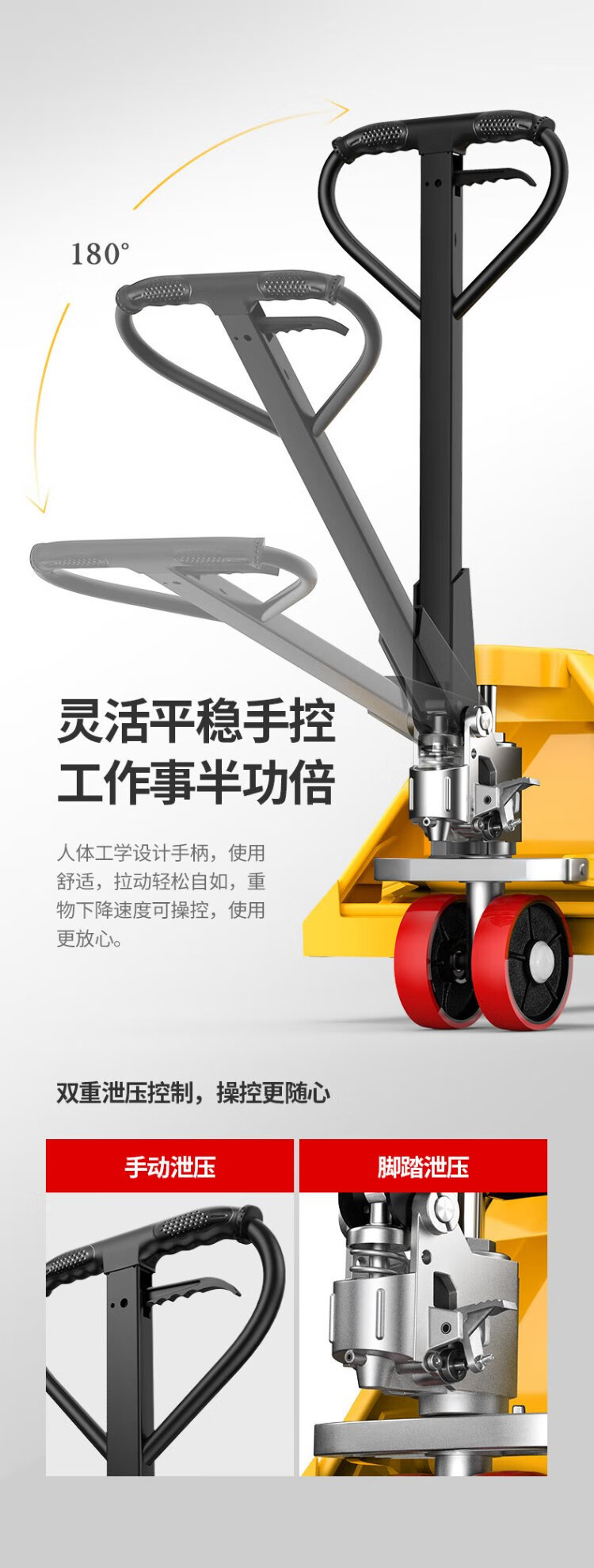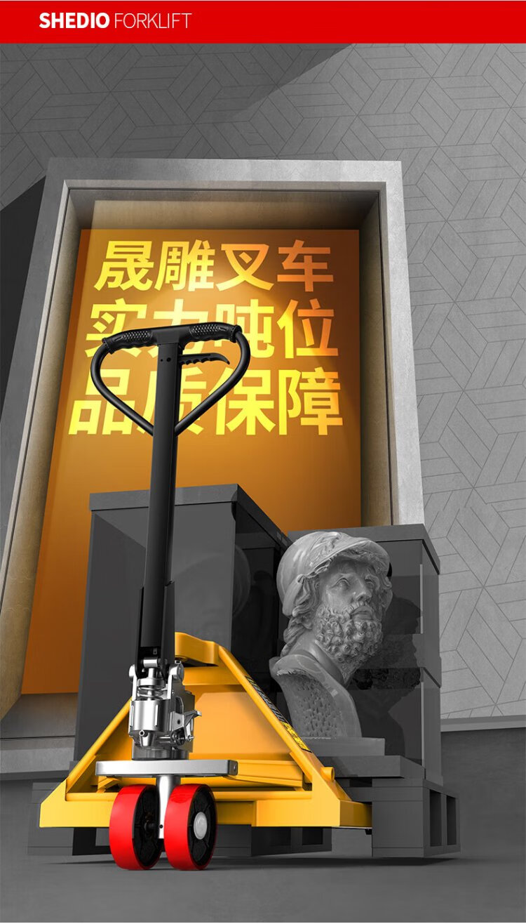 Shengdiao manual ground cow 2-ton hydraulic pallet handling forklift with outer width 550mm and fork length 1150mm nylon wheel