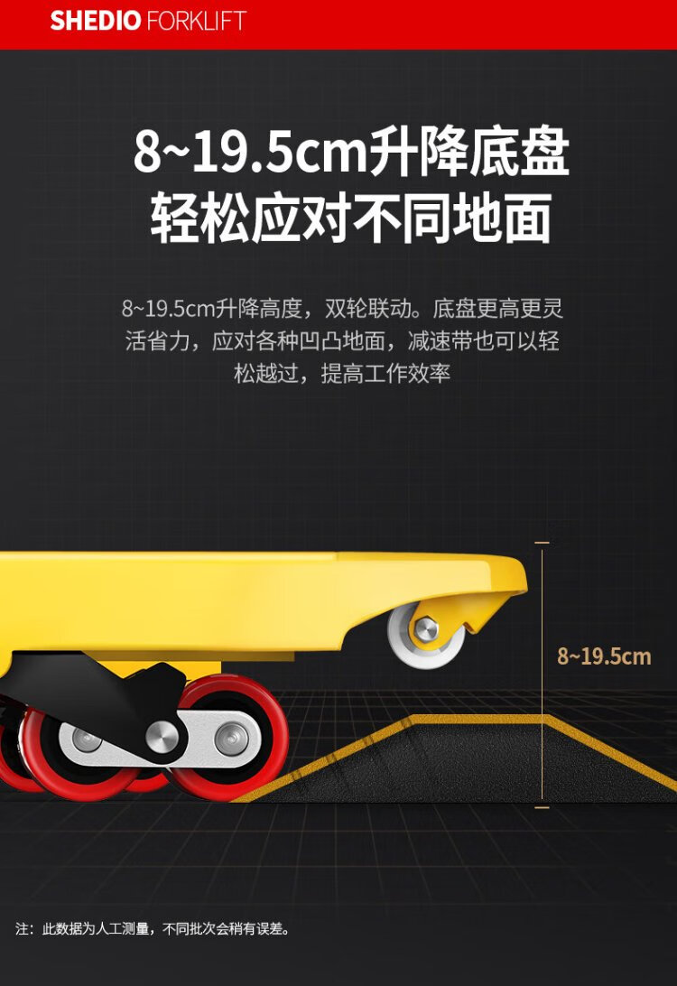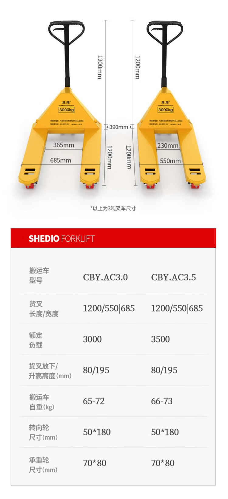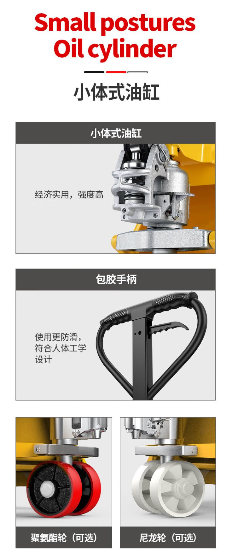 Shengdiao manual ground cow 2-ton hydraulic pallet handling forklift with outer width 550mm and fork length 1150mm nylon wheel