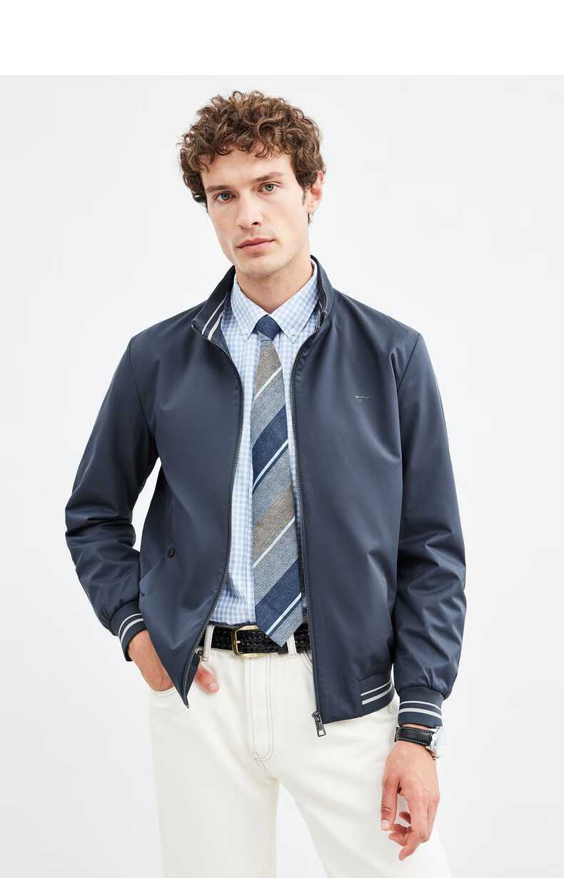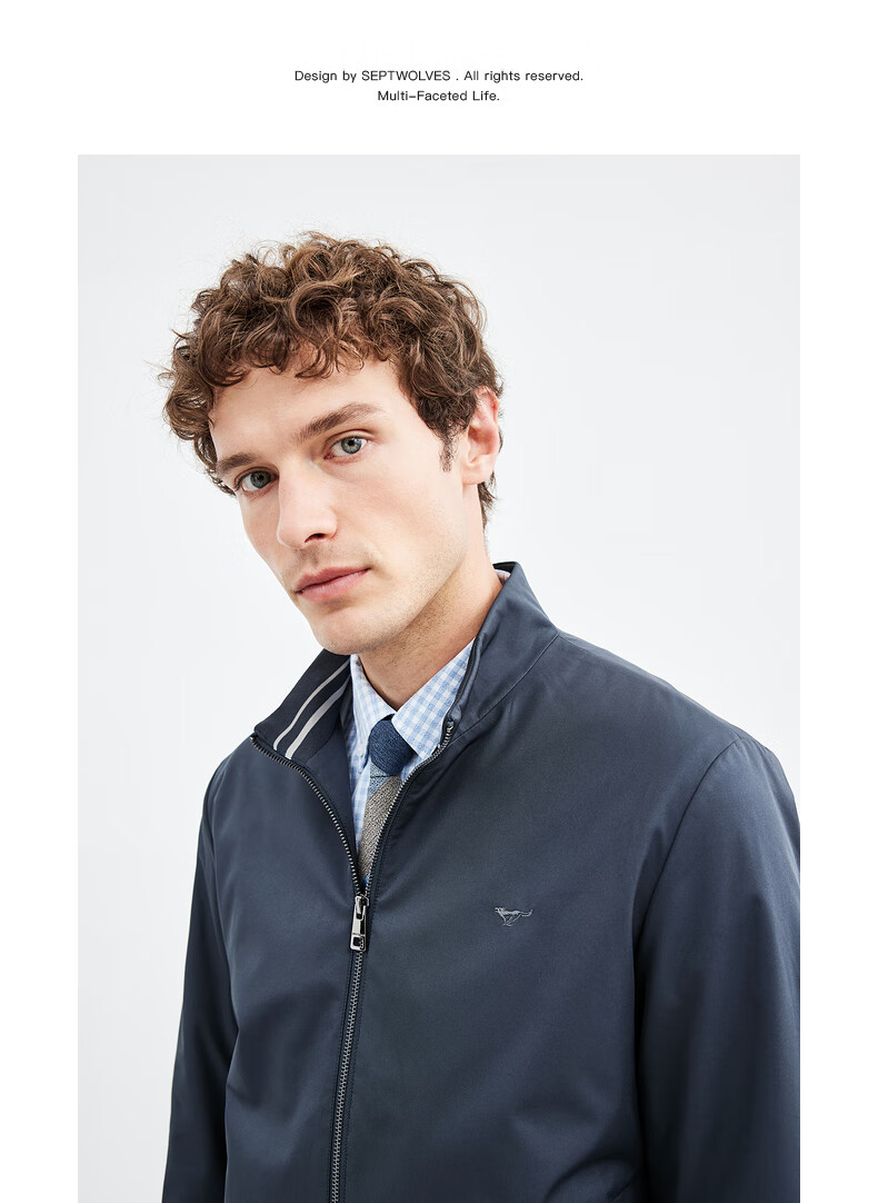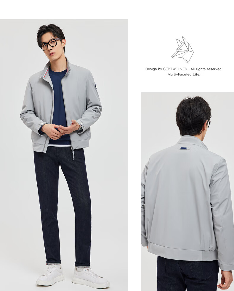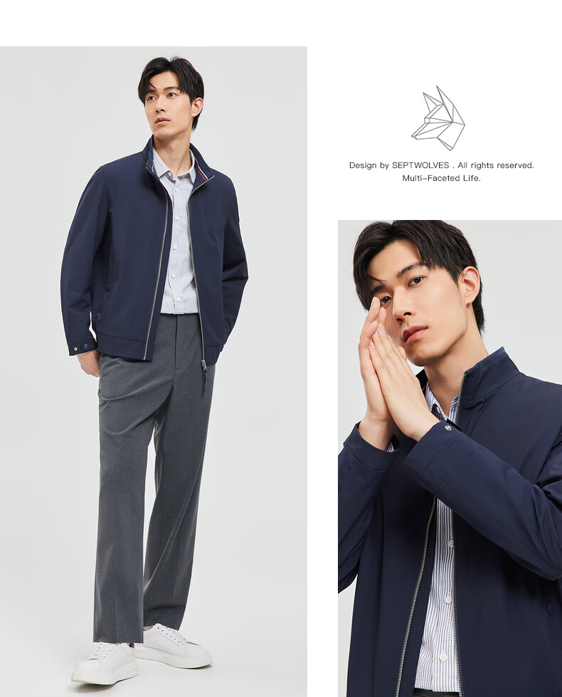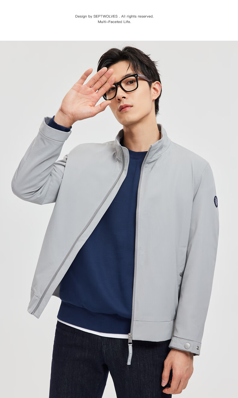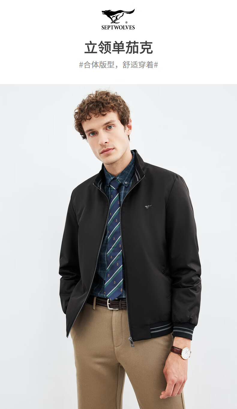 Septwolves Jacket Men's Jacket Business Casual Stand Collar Easy to Care Fit Elastic Not Easy to Deform Soft and Comfortable Men's Clothing