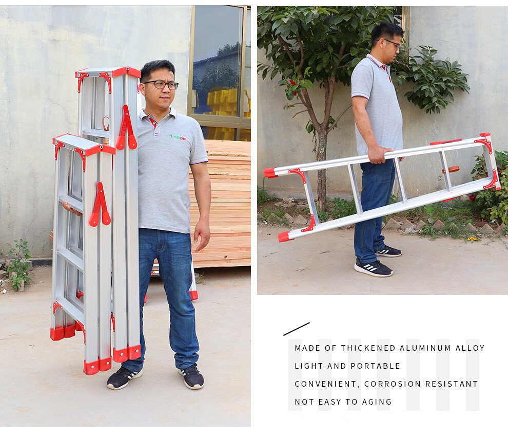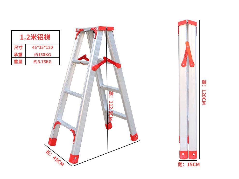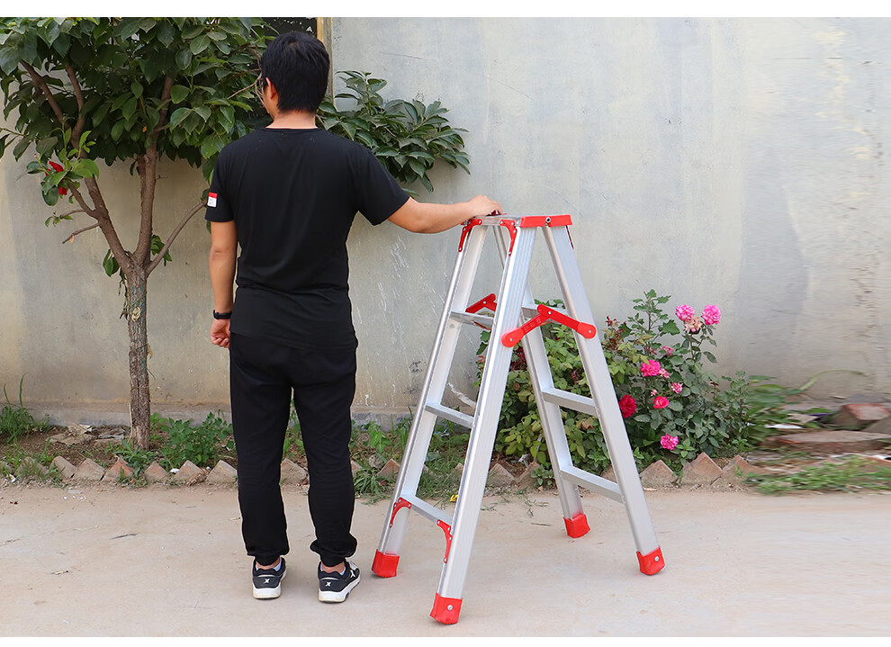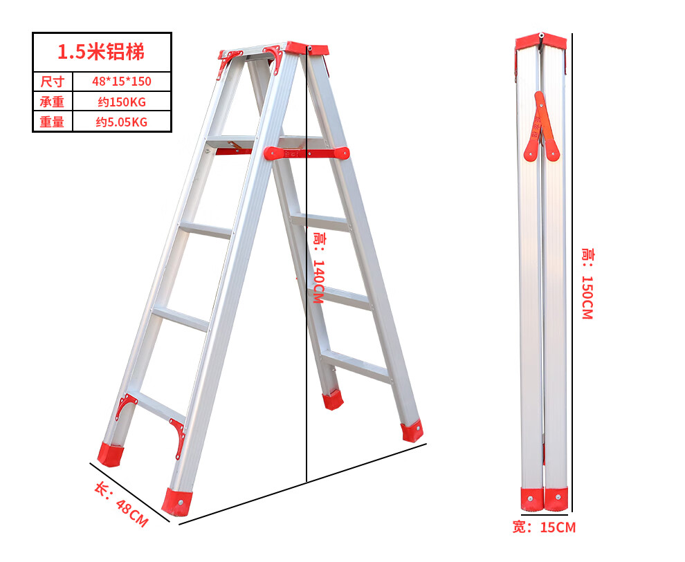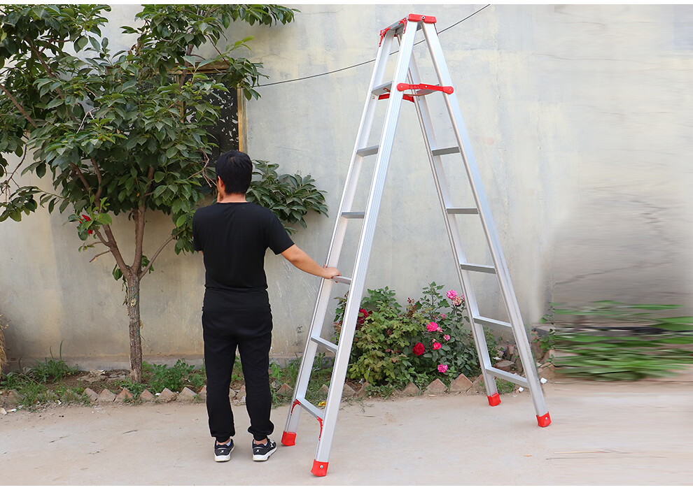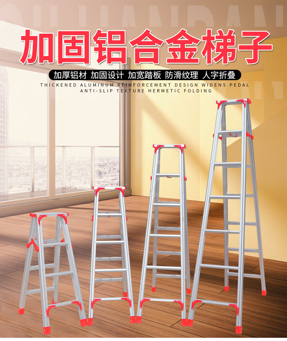 Qilu Anran Reinforced Aluminum Alloy Ladder Double-sided Folding Ladder Herringbone Ladder Engineering Ladder Warehouse Decoration Ladder Thickened 150CM