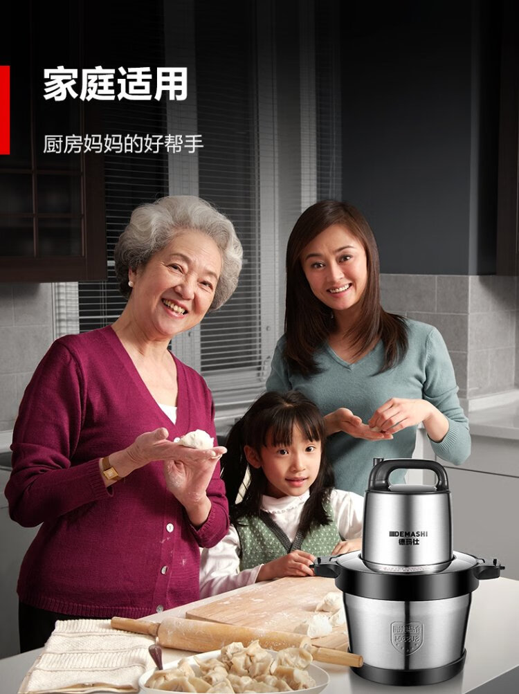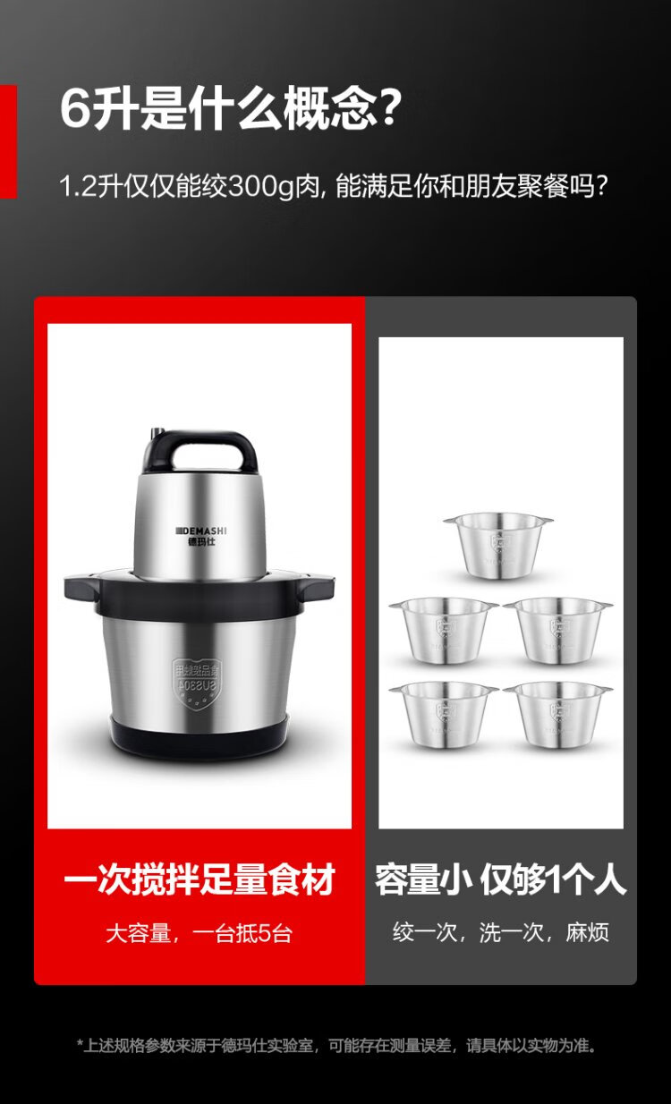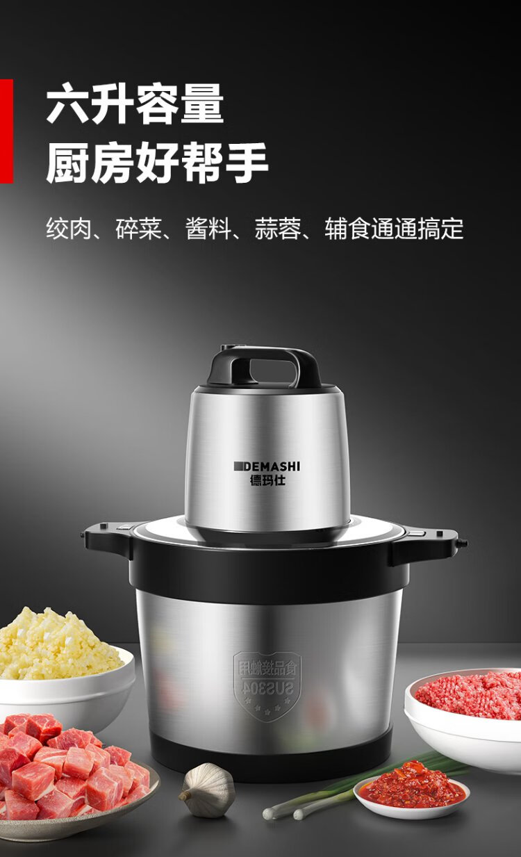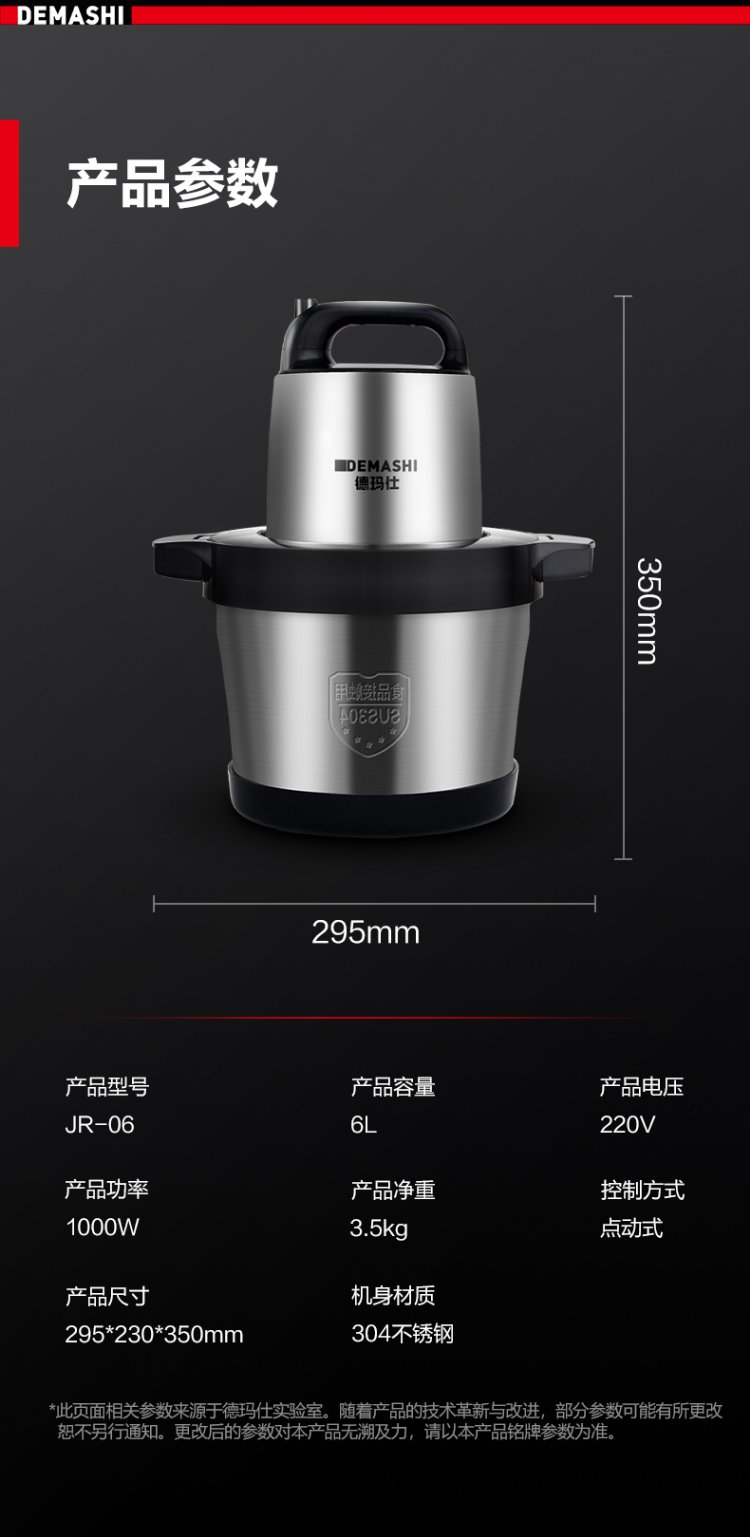 DEMASHI commercial meat grinder, household stainless steel meat grinder, multi-functional cooking machine, vegetable grinder, 6L stuffing grinder, minced meat grinder, JR-06 (shipped from Beijing warehouse)