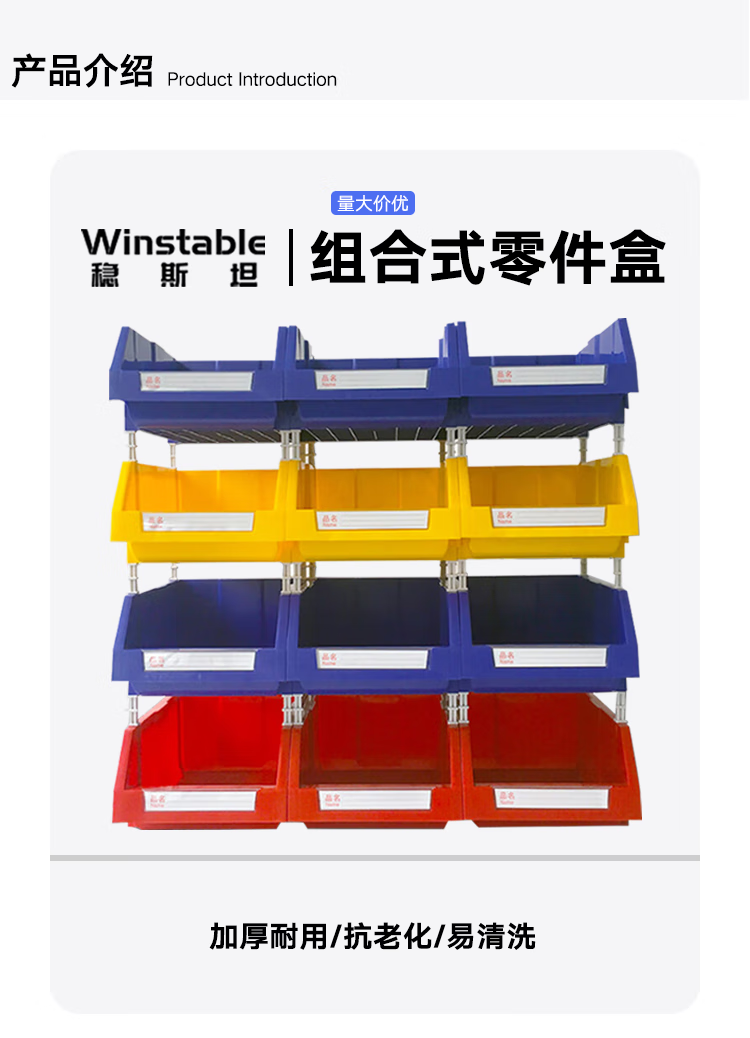 Wenstan WST014 parts box plastic combined parts box material box warehouse storage box screw box tool box oblique mouth red 180*120*80mm 1 piece