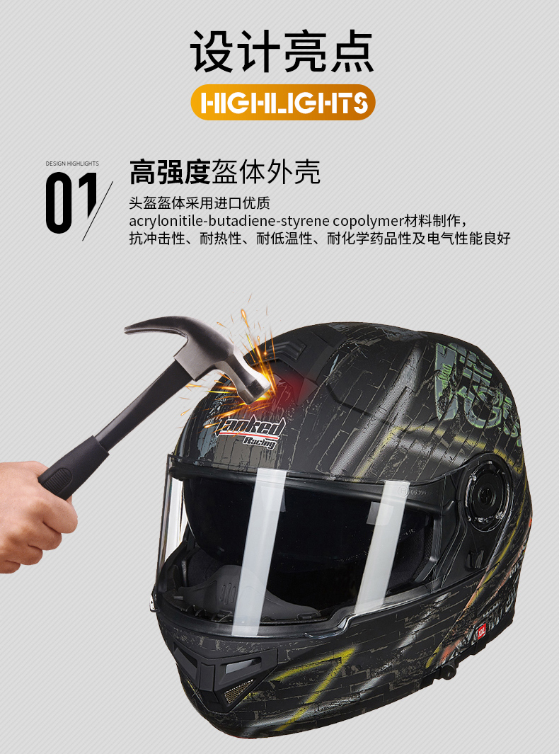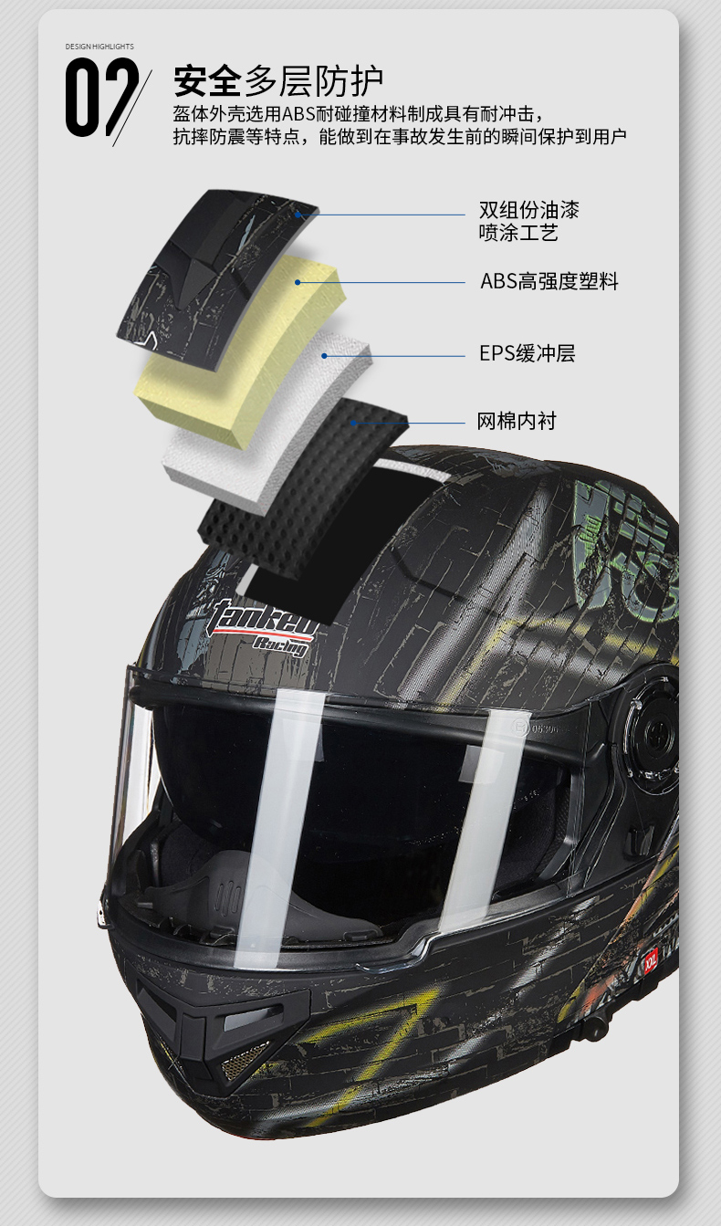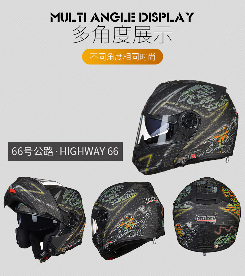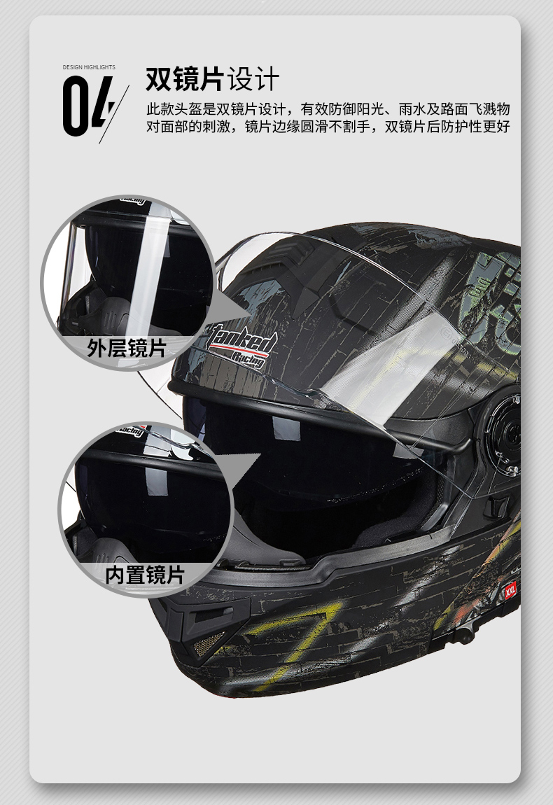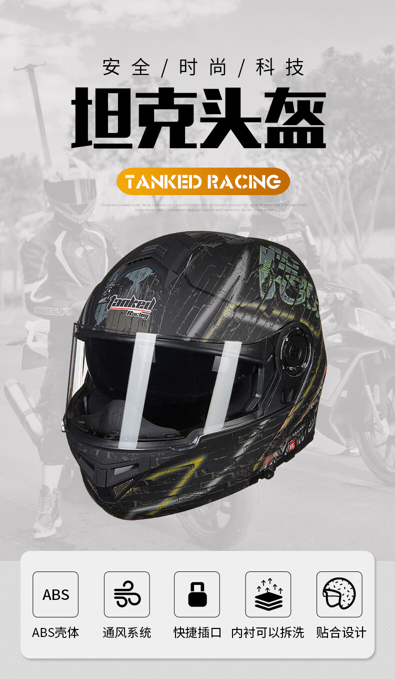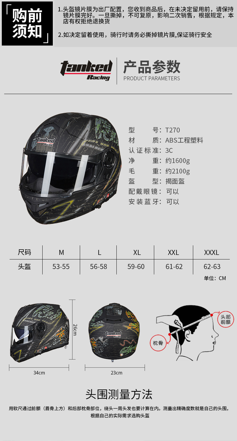 Tank motorcycle helmet T270 open-face helmet 3C certified double lens all-season riding helmet black 2XL