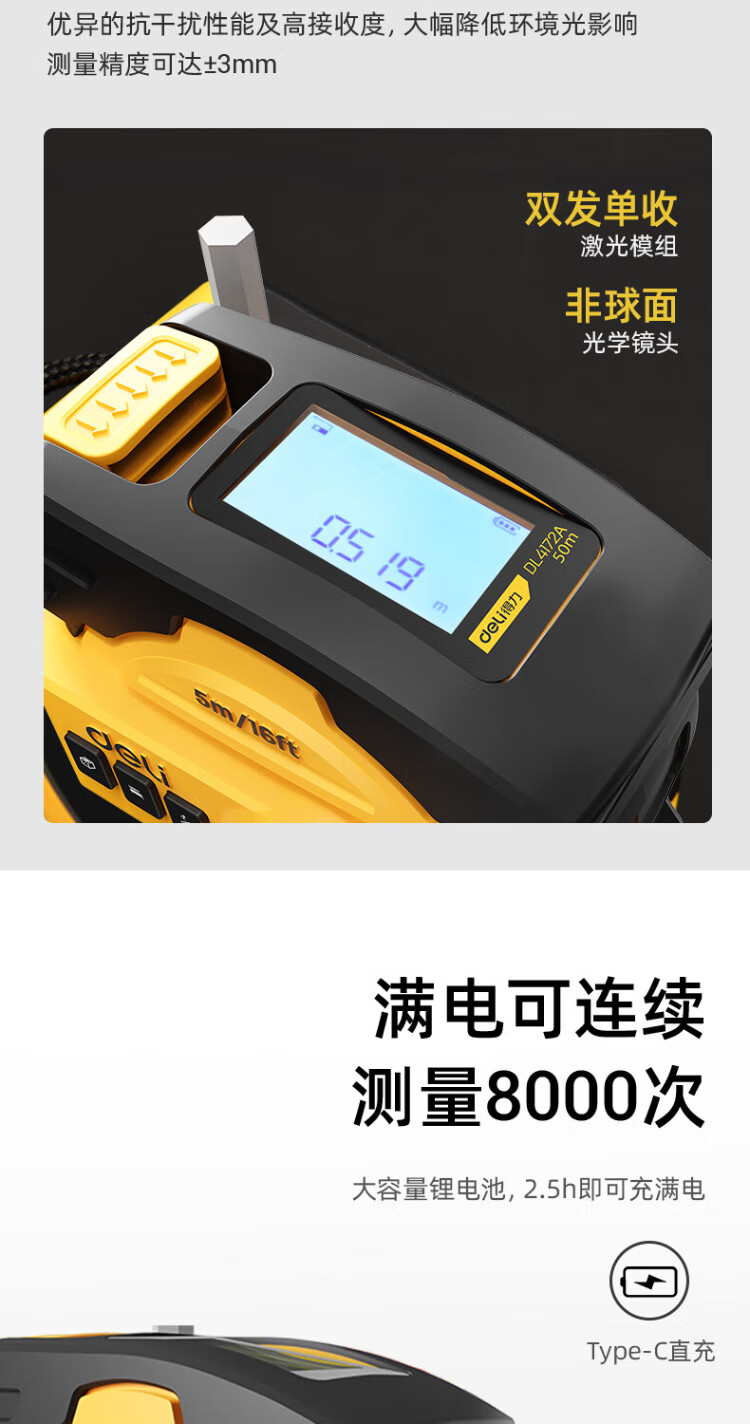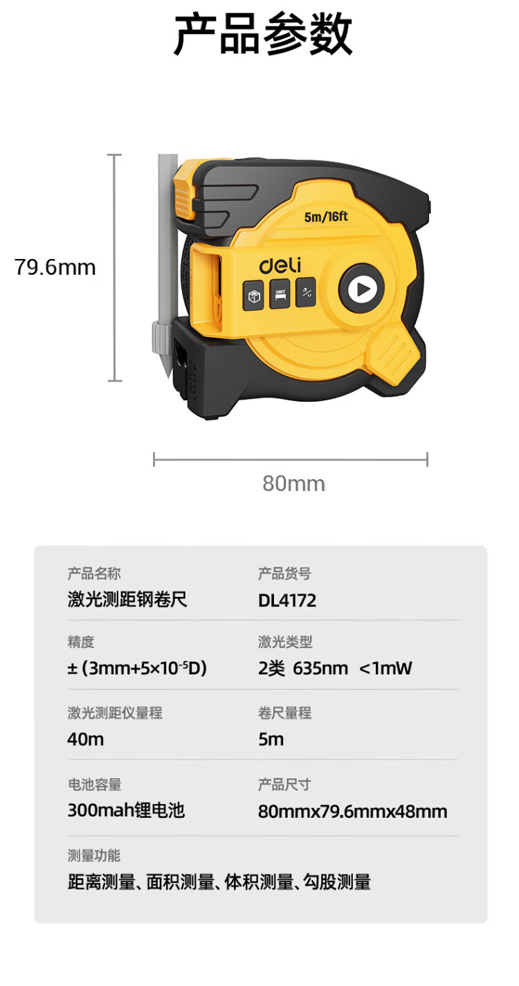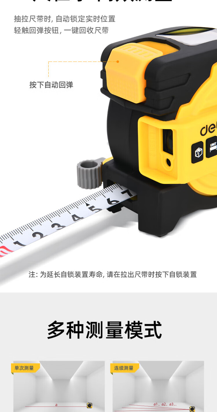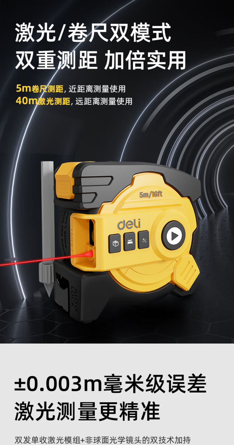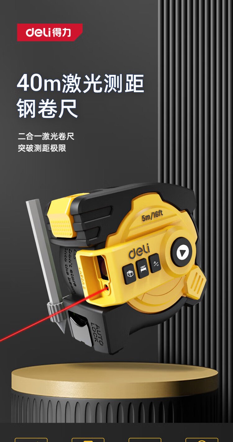 Deli 40-meter self-locking laser ranging steel tape measure distance meter digital display measuring room instrument (40-meter laser + 5-meter tape measure)