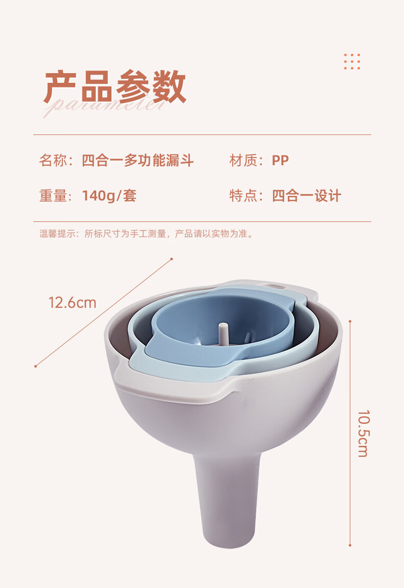 Mengting multifunctional funnel set filter oil pot kitchen household oil pouring funnel repackaging plastic wine funnel 4512