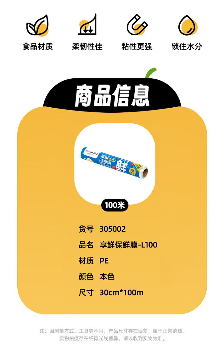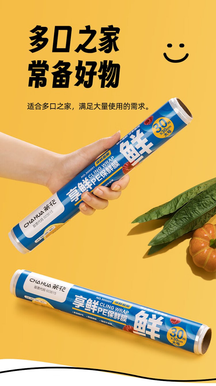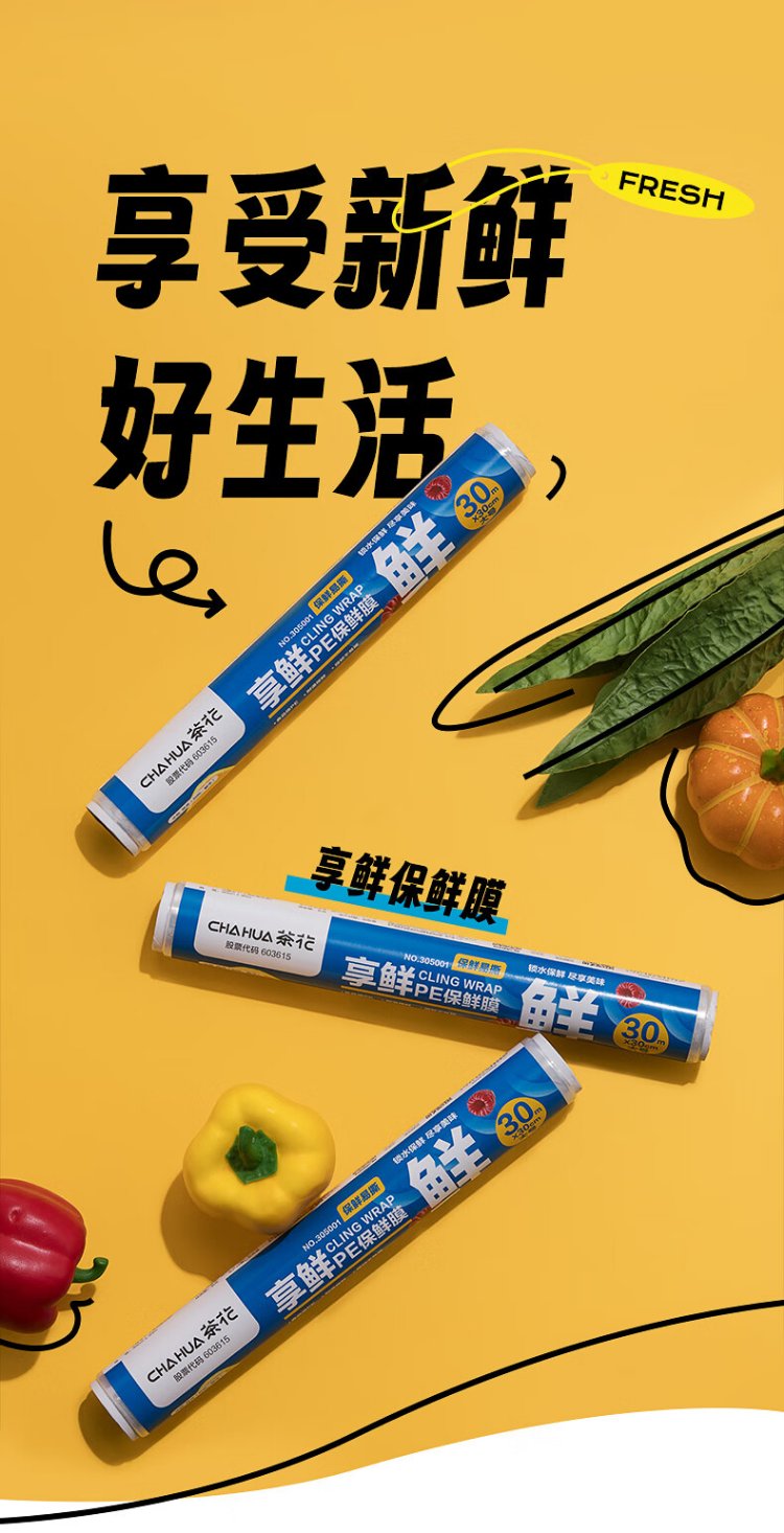 Camellia disposable cling film microwave high temperature resistant refrigerator large safety film food grade preservation 30cm*100 meters