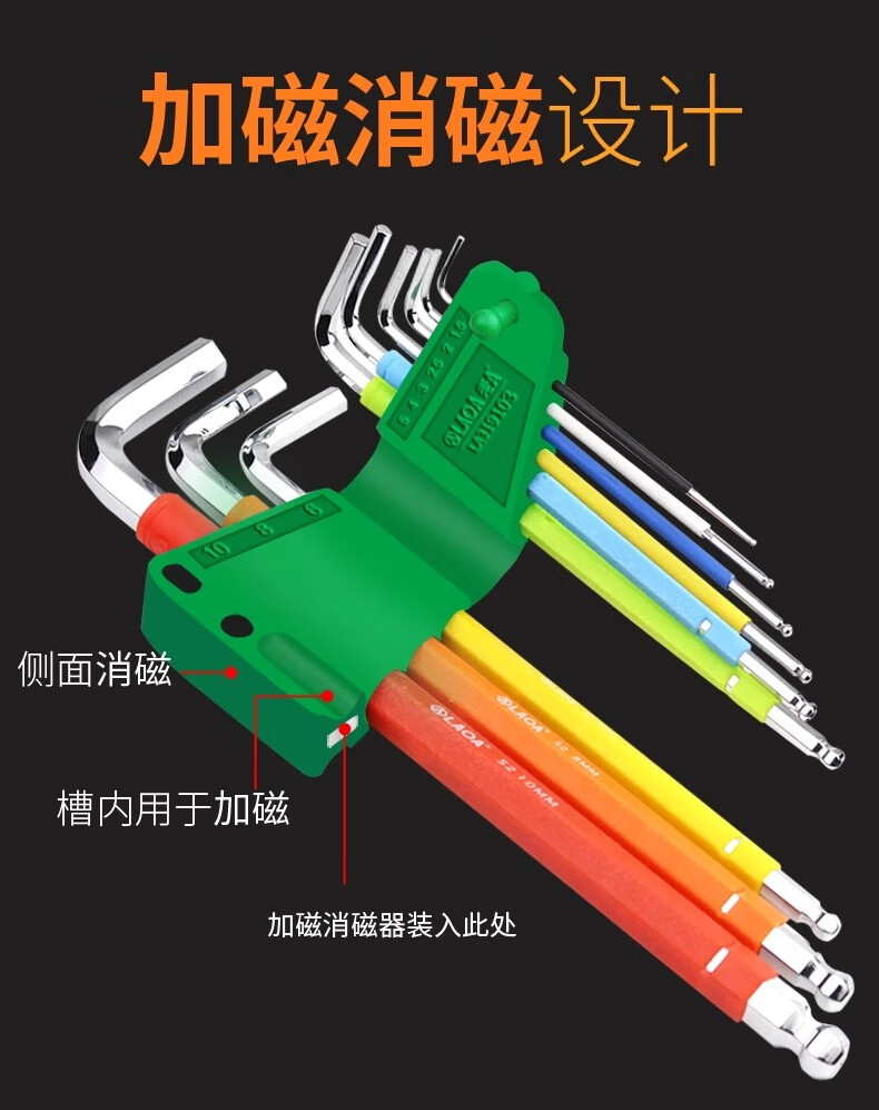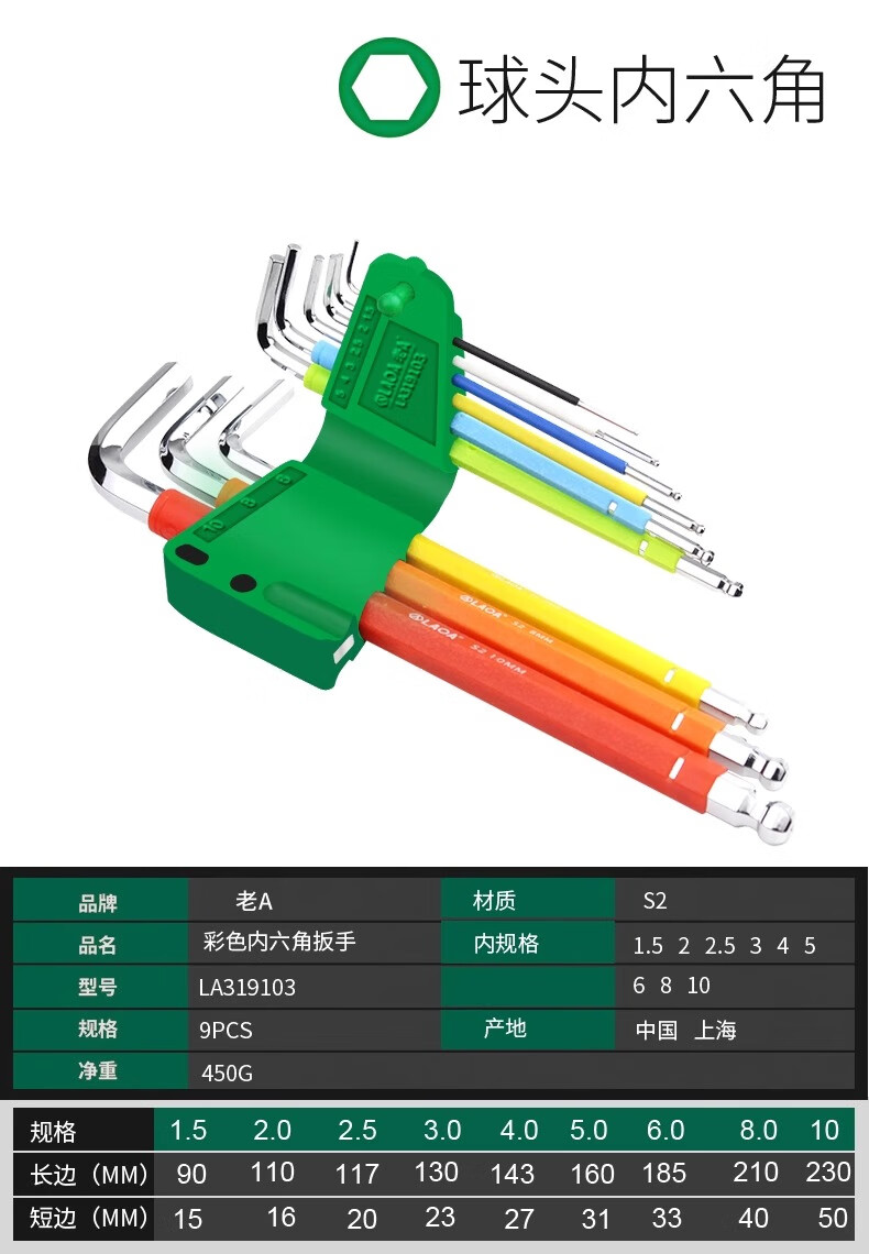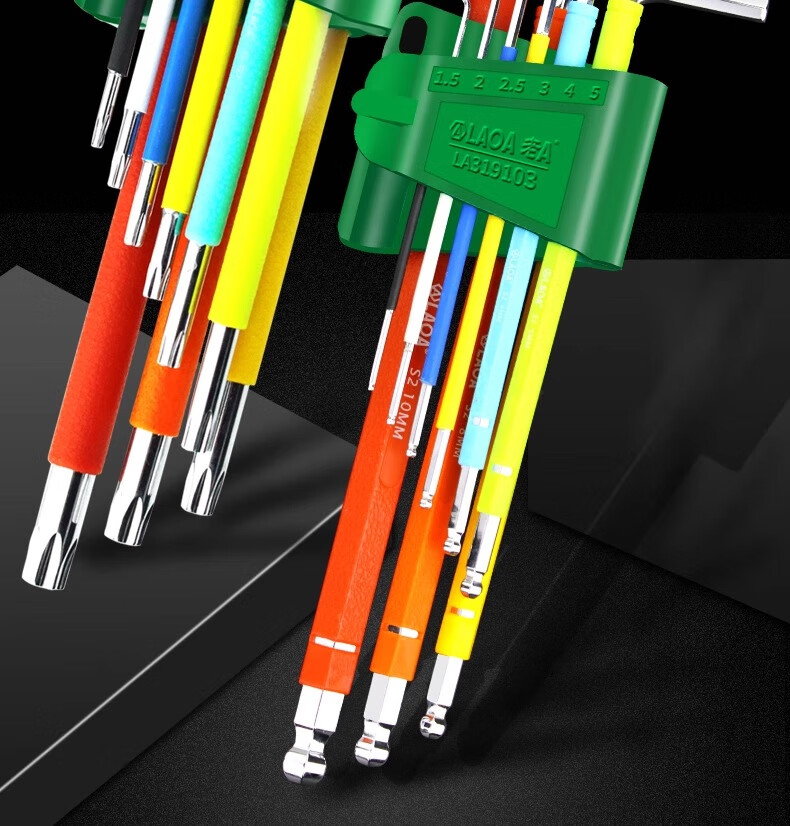 LAOA old A ball head hexagonal wrench and hexagonal screwdriver 9-piece set for home use 1.5-10mm LA319103