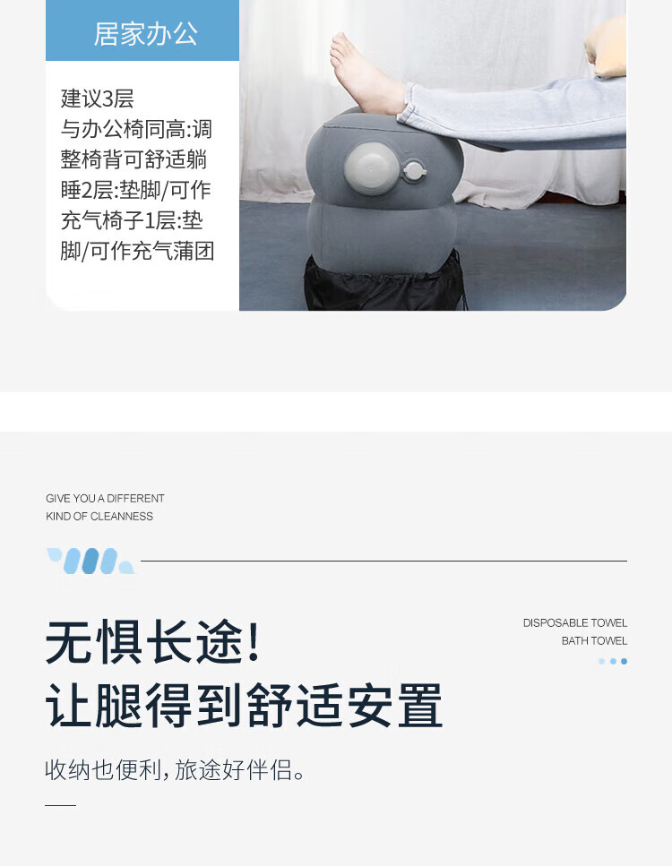Xinqin inflatable foot pad portable multi-functional foot stool car cushion foot support aircraft high-speed rail sleeping artifact three layers adjustable