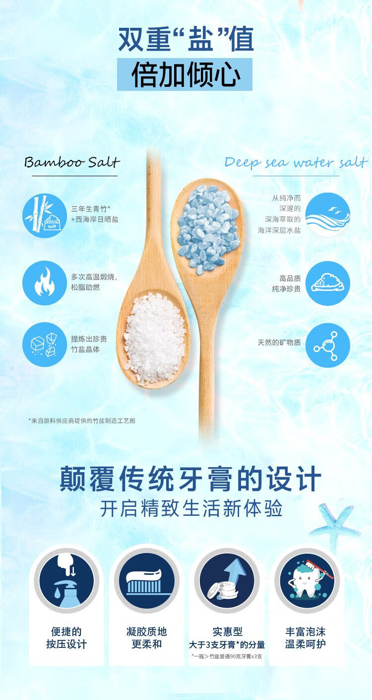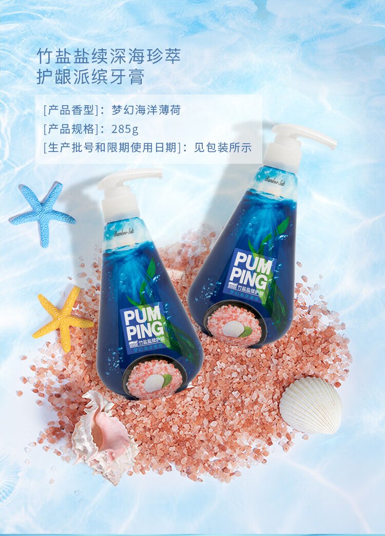 Bamboo salt LG Paibin push-type toothpaste 285g*1 bottle deep sea treasure refreshing taste reduces tooth stains and cleans the mouth