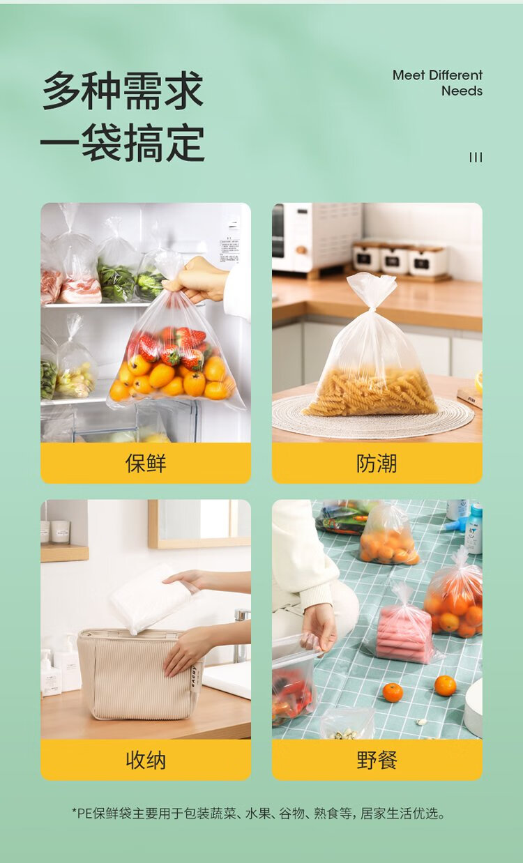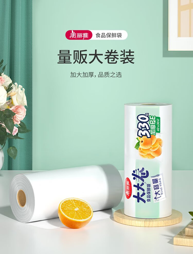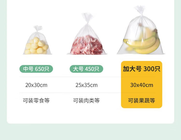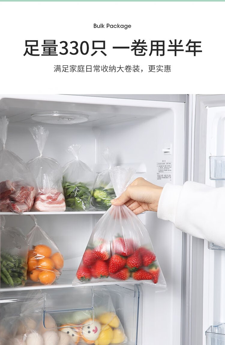 Meliya food-grade fresh-keeping bags, extra-large size 330 pieces, thickened freezer food packaging plastic bags