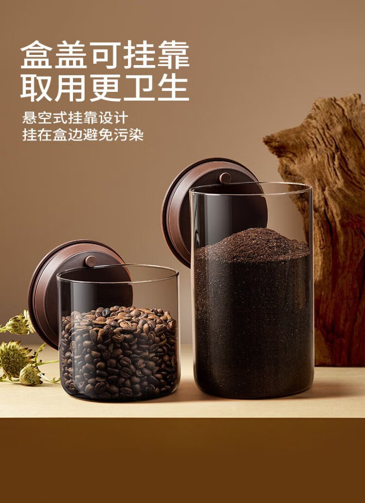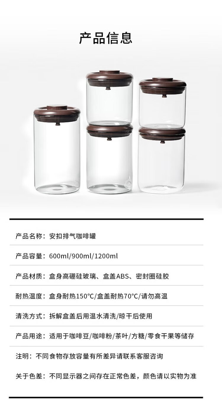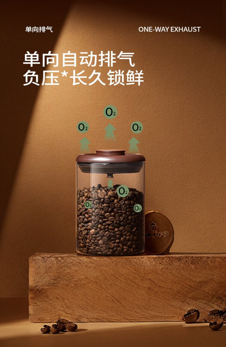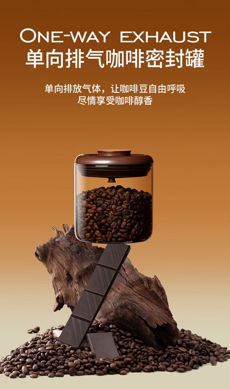 ANKOU glass jar coffee bean sealed jar one-way exhaust coffee powder portable storage jar 900ml coffee color