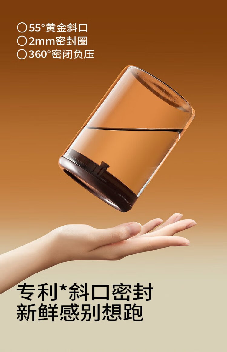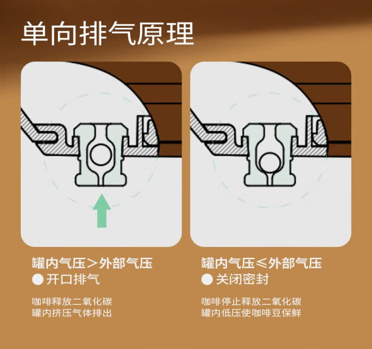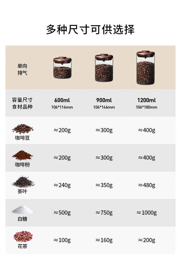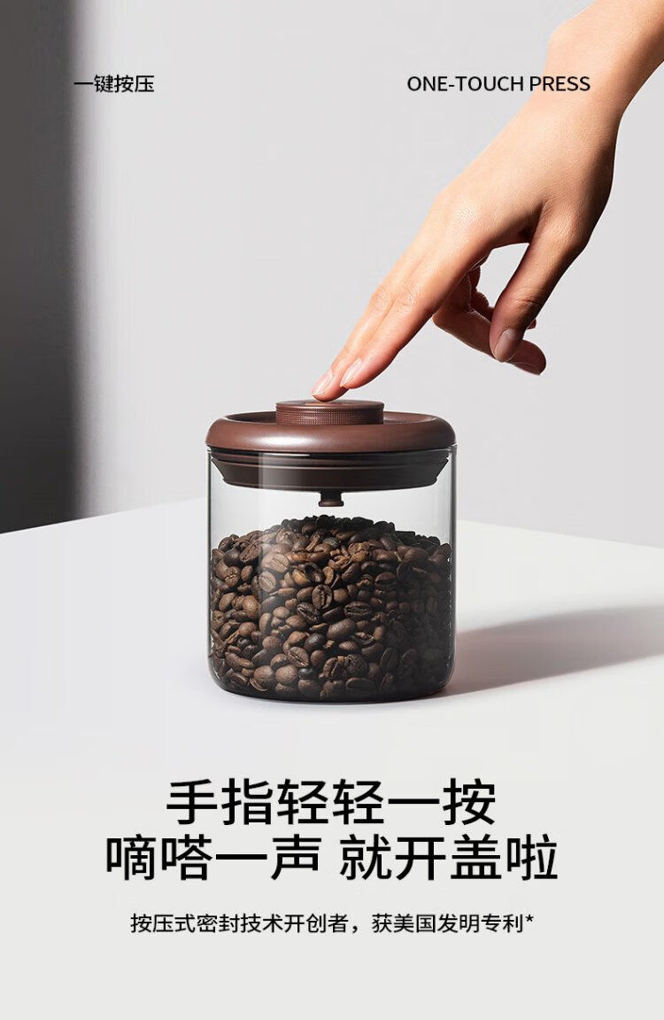 ANKOU glass jar coffee bean sealed jar one-way exhaust coffee powder portable storage jar 900ml coffee color