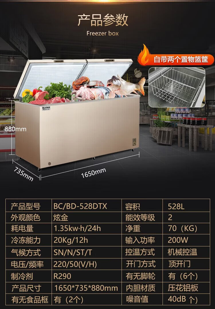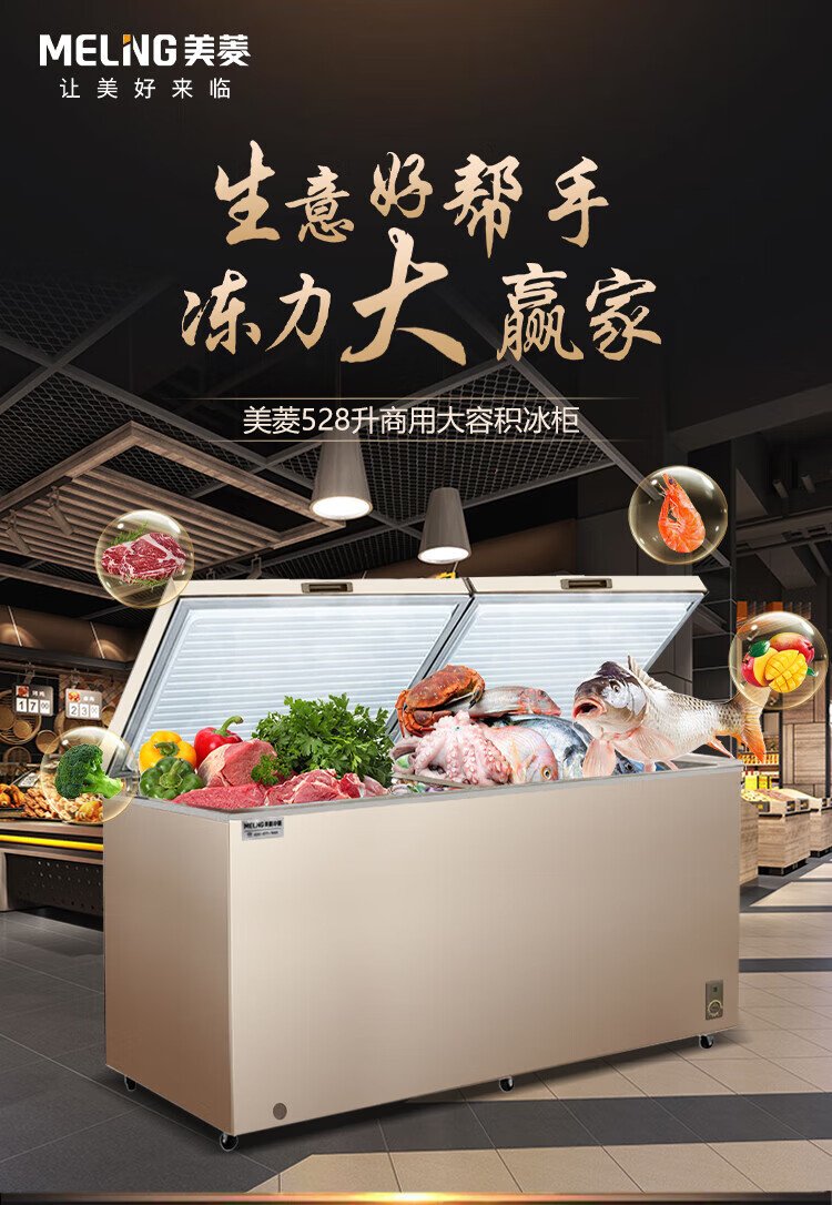 MeiLing 528 liter single temperature commercial freezer secondary energy efficiency mechanical temperature control cryogenic quick freezing BC/BD-528DTX trade-in