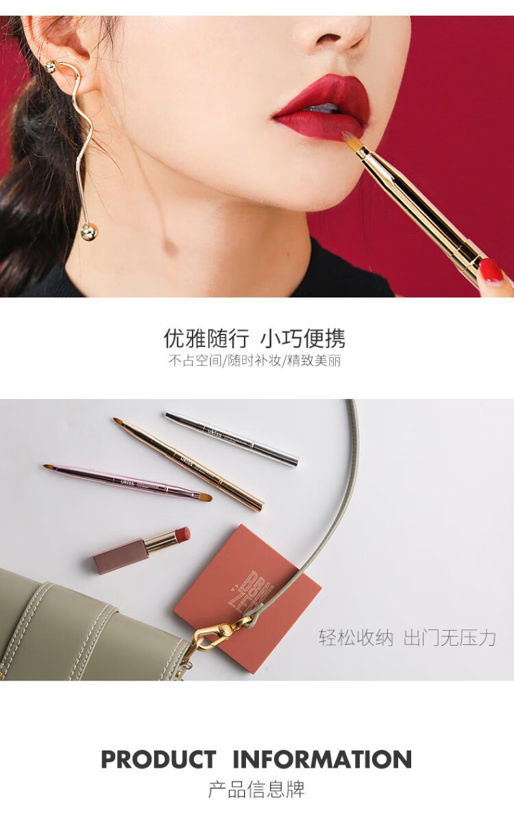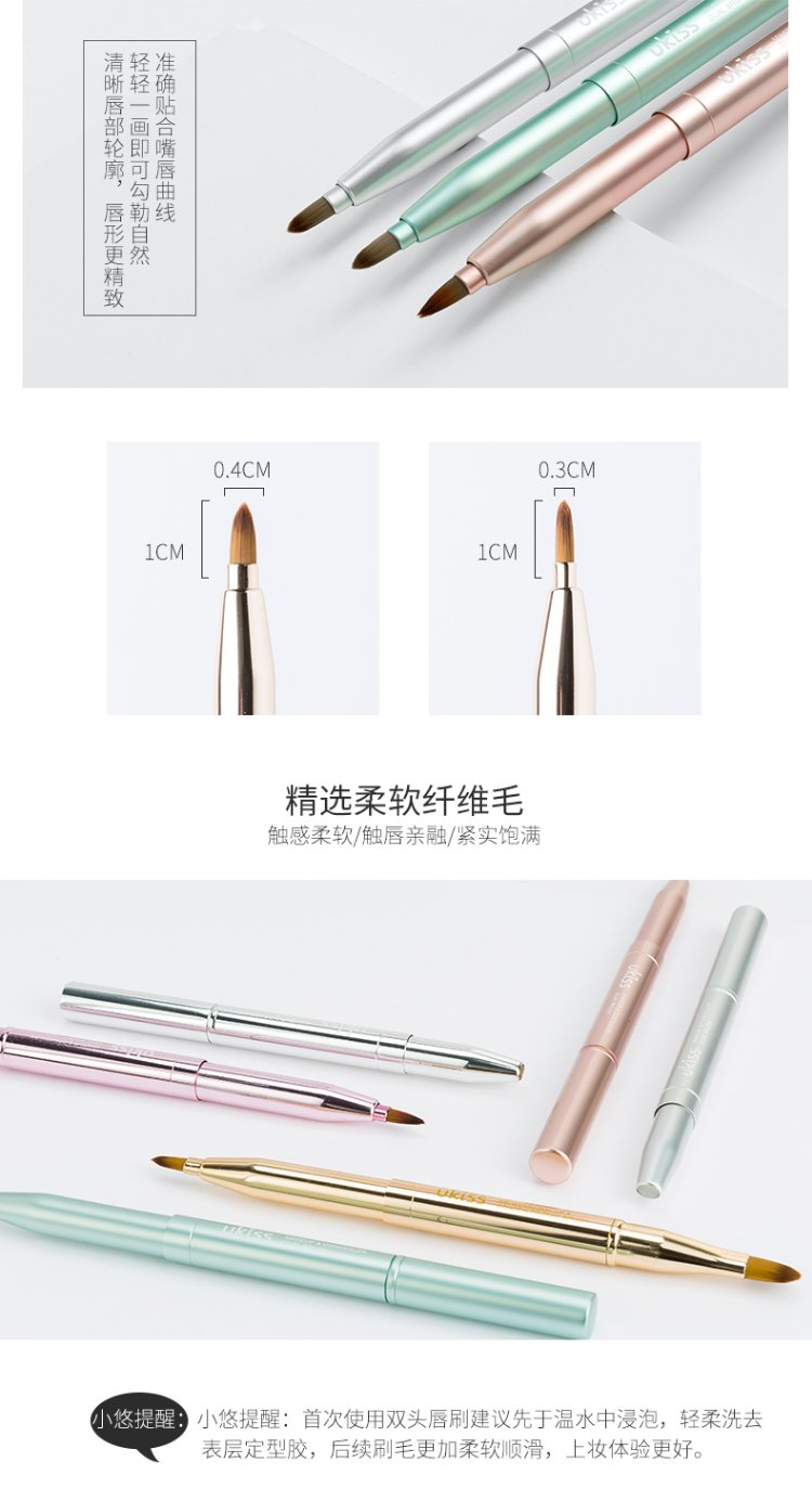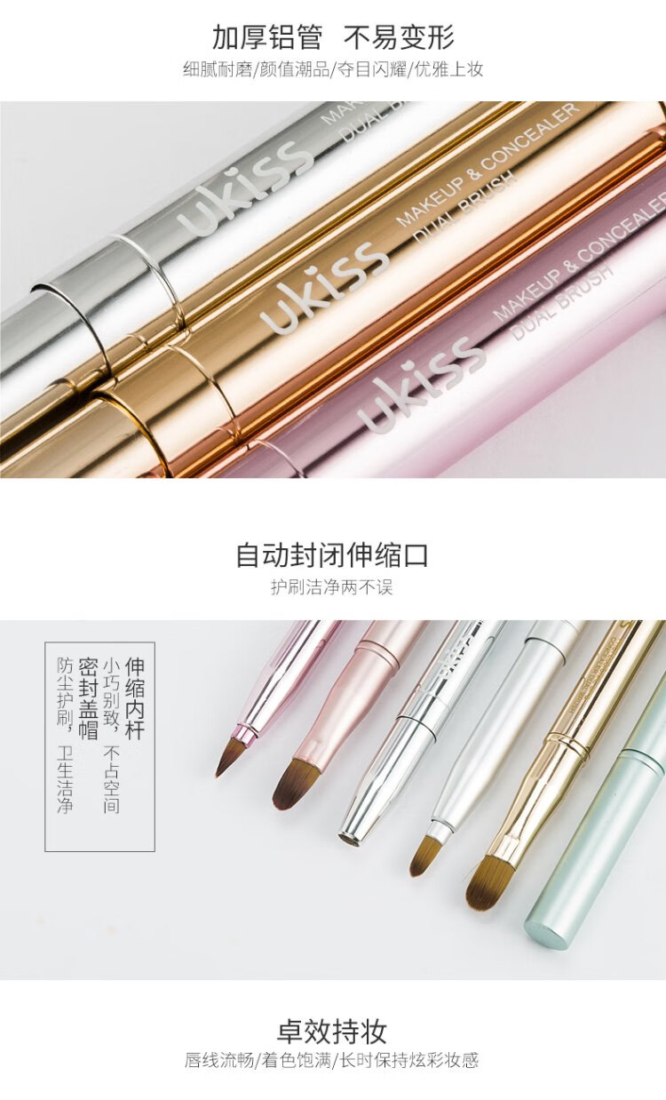 Ukiss portable double-headed lip brush (matte powder) retractable round-head dizzy lipstick concealer lip liner detail makeup brush