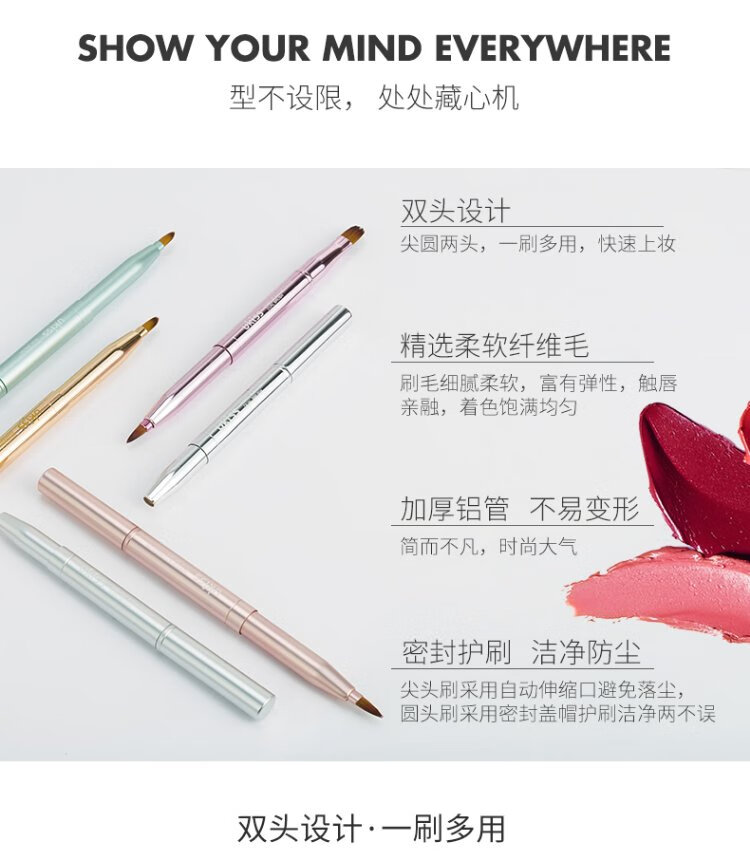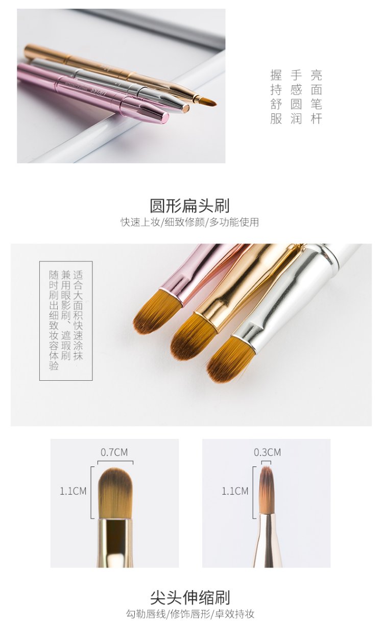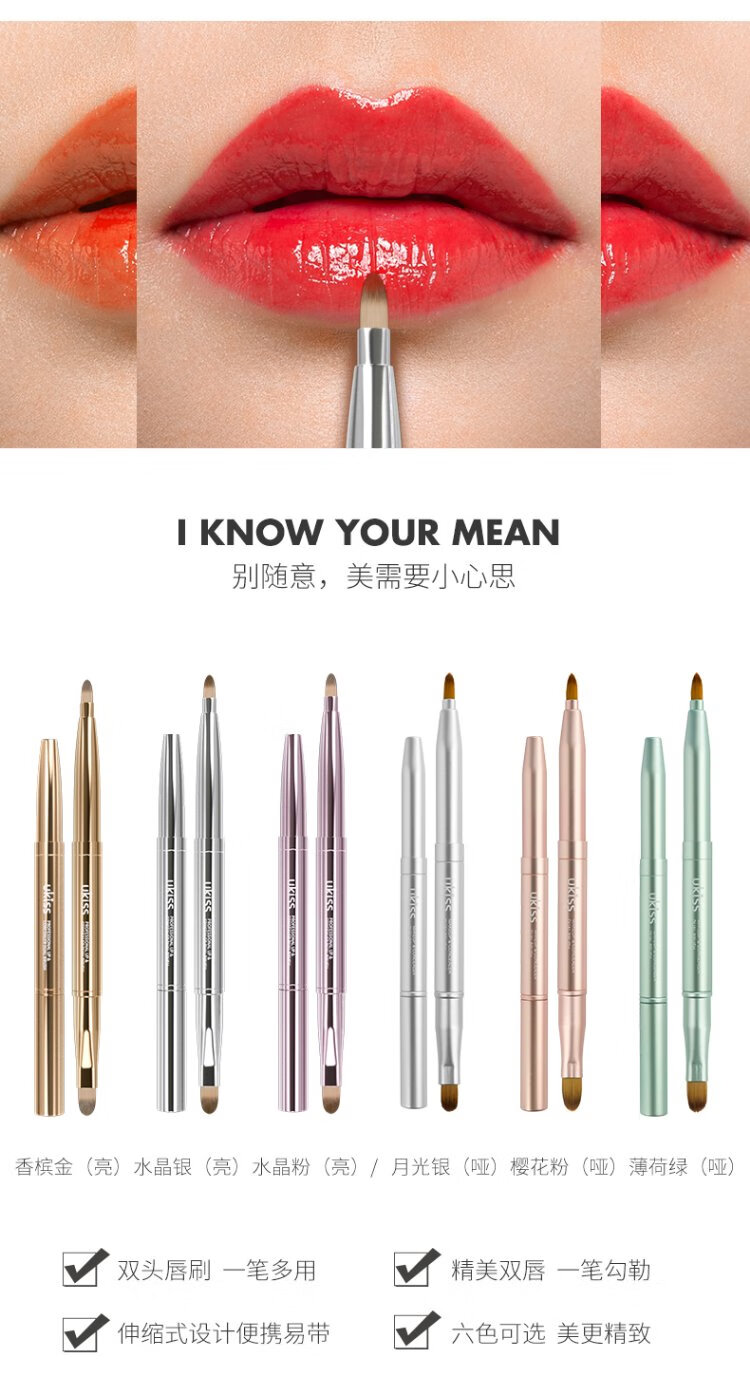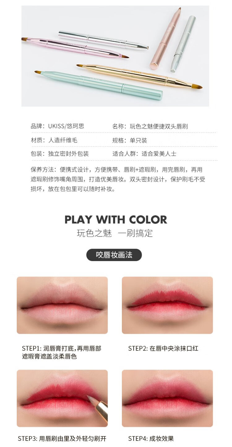 Ukiss portable double-headed lip brush (matte powder) retractable round-head dizzy lipstick concealer lip liner detail makeup brush