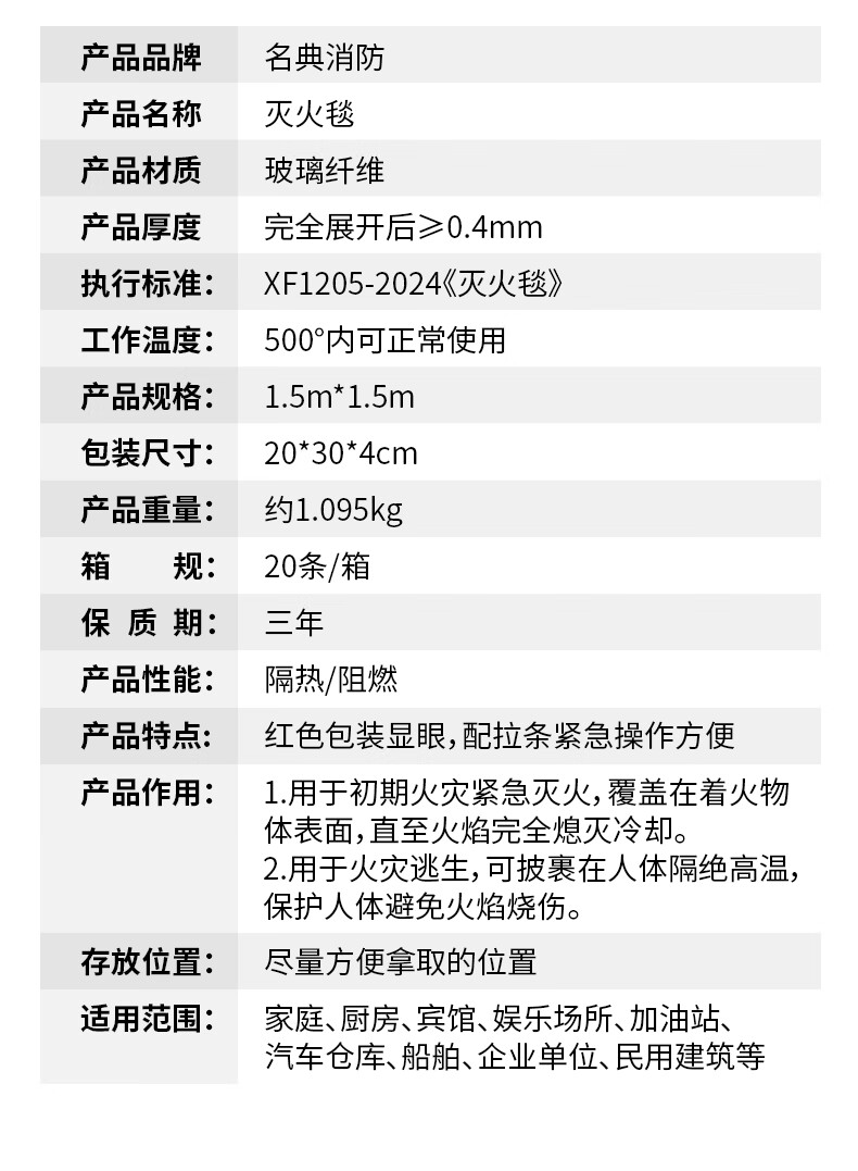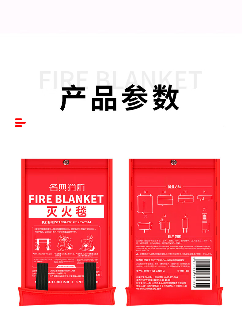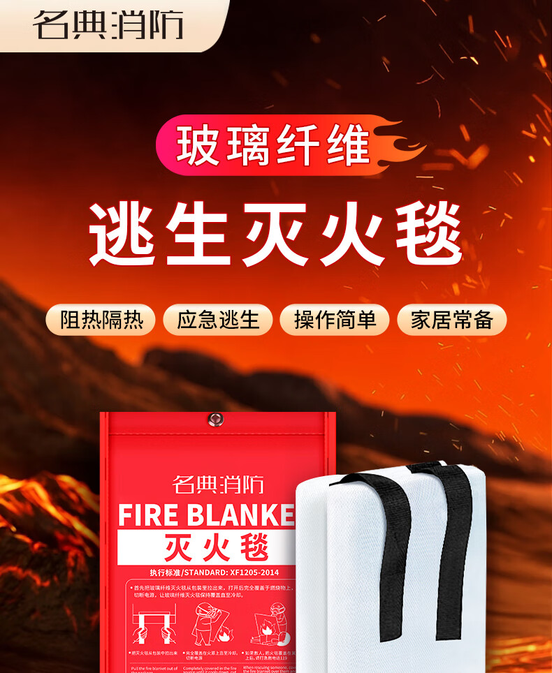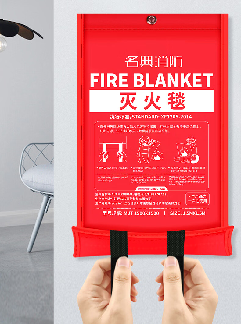 Mingdian fire extinguishing blanket 1.5M*1.5M fiberglass material, highly efficient flame retardant, used with fire extinguishers, home, vehicle and factory emergency