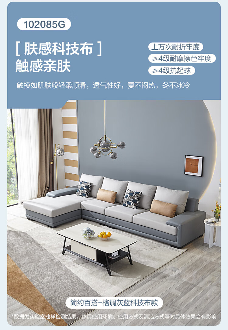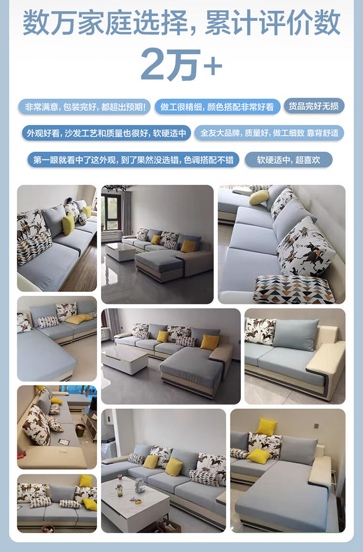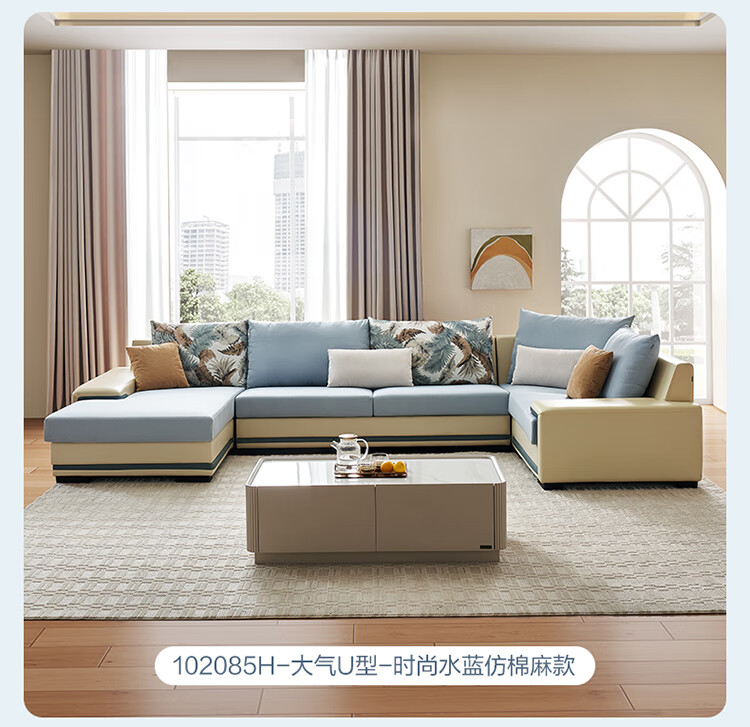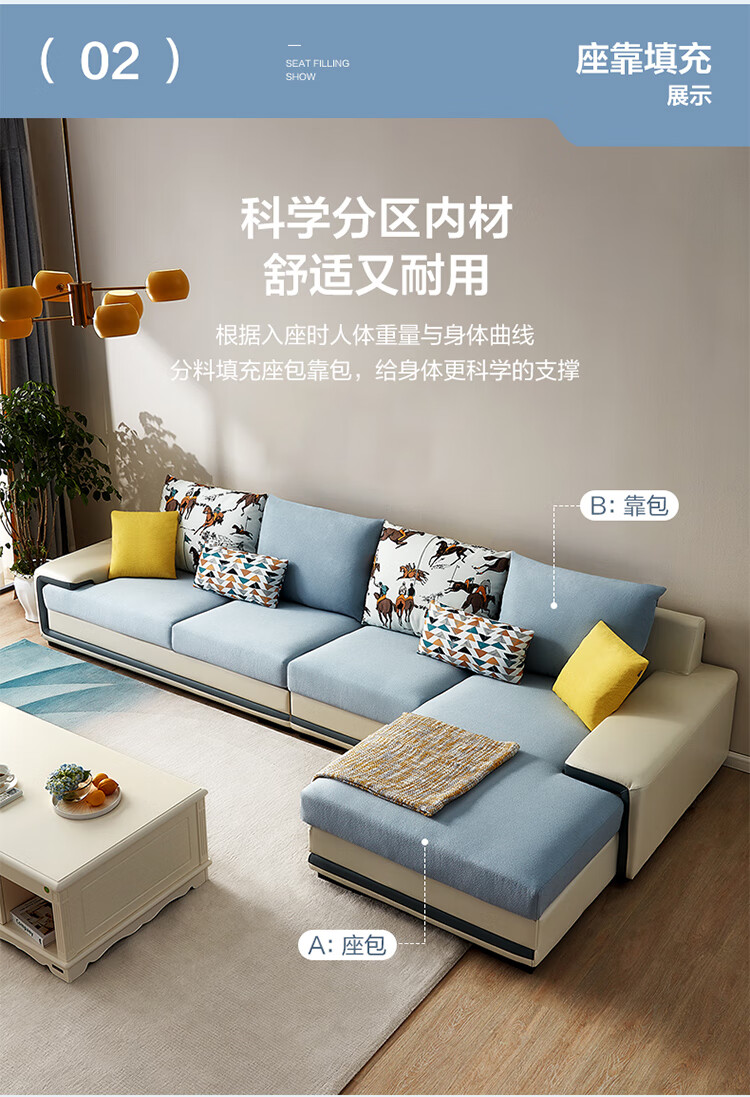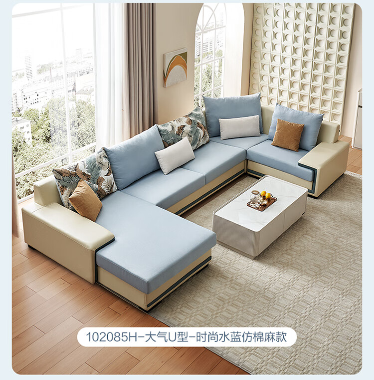 Quanyou Home Modern Simple Home Large Apartment Corner Sofa Living Room Solid Wood Frame Fabric Sofa Government Subsidy