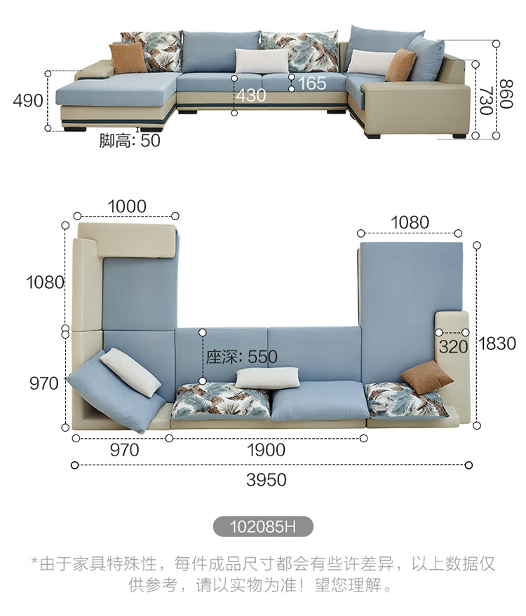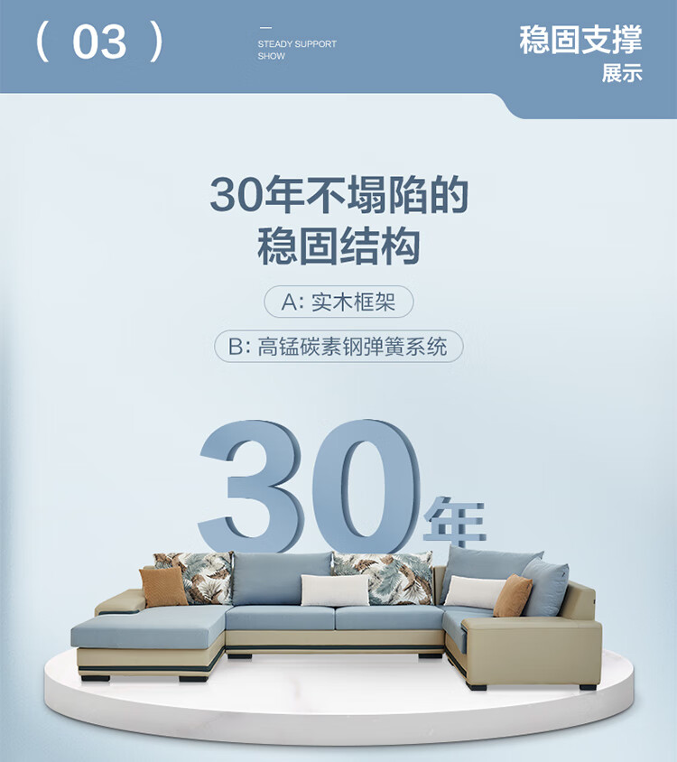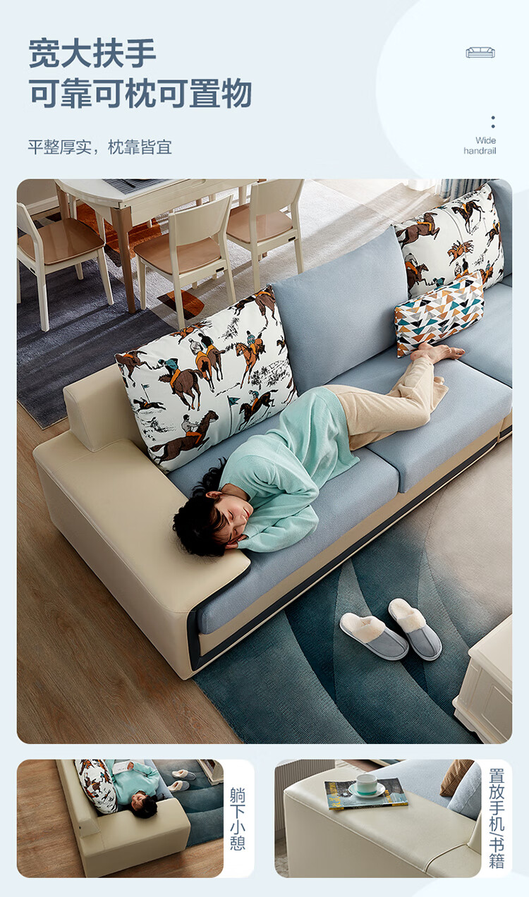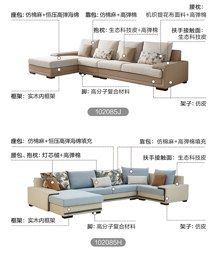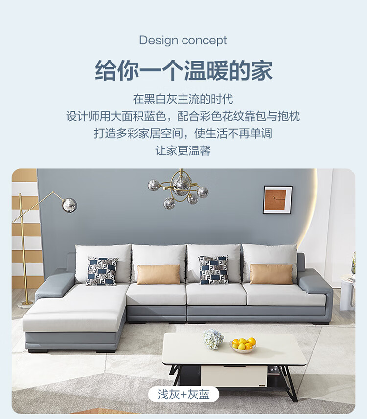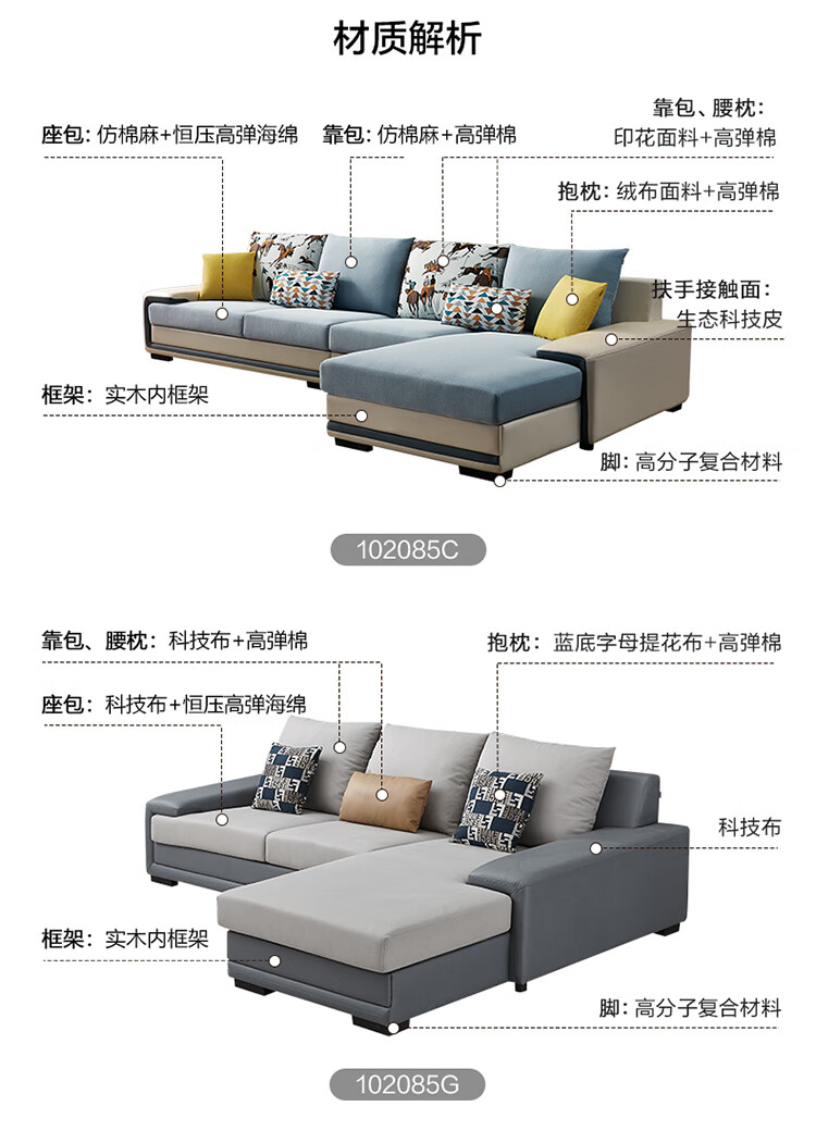 Quanyou Home Modern Simple Home Large Apartment Corner Sofa Living Room Solid Wood Frame Fabric Sofa Government Subsidy