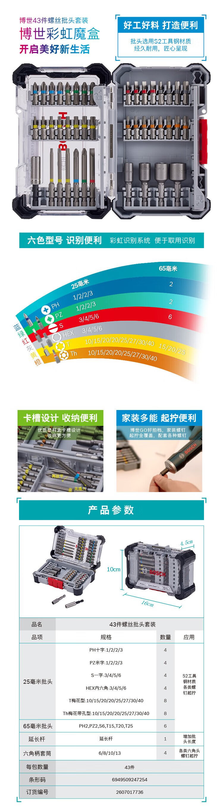 Bosch Bosch screwdriver set electrical repair toys disassembly and assembly rainbow magic box 43-piece set including handle extension rod