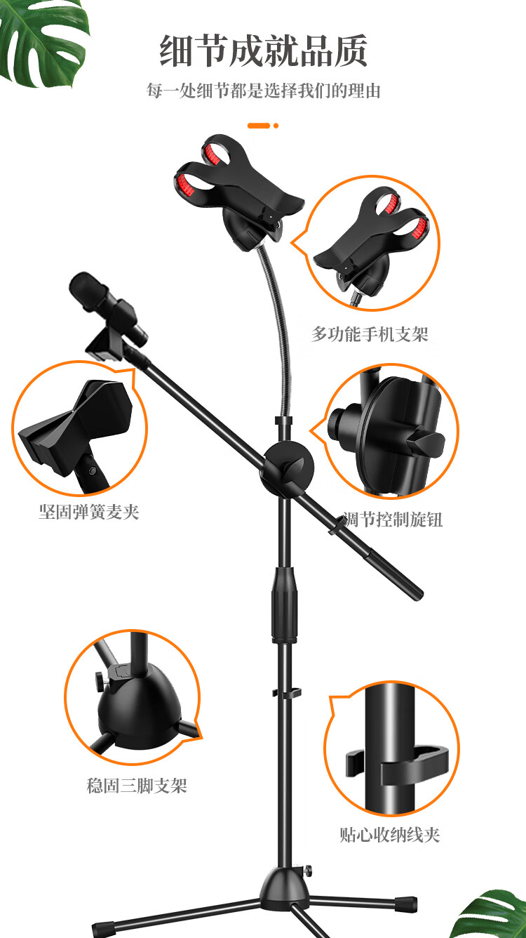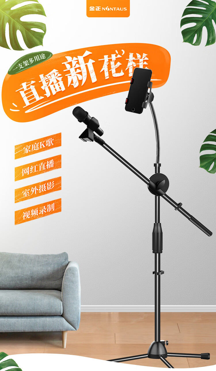 NINTAUS HY-103B mobile phone floor stand microphone stand microphone stand mobile phone live broadcast stand singing stand 360 rotating tripod telescopic stand