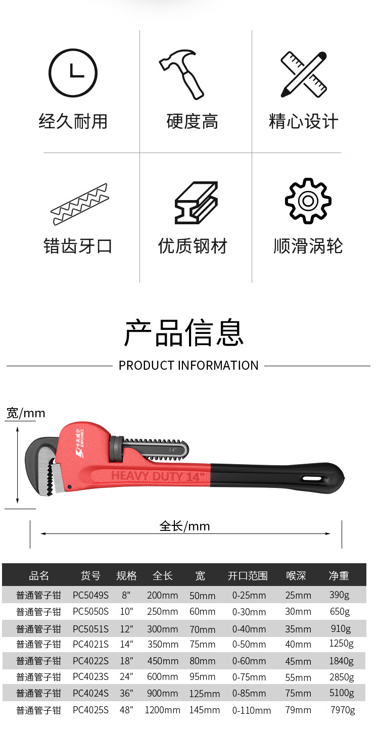 Kraftwell heavy-duty pipe wrench large opening water pipe wrench live pipe water pump hand vise 24 inches 610mm PC4023S