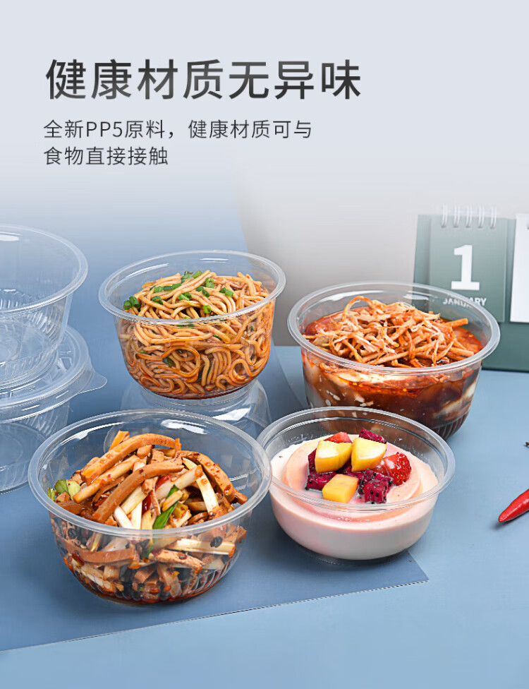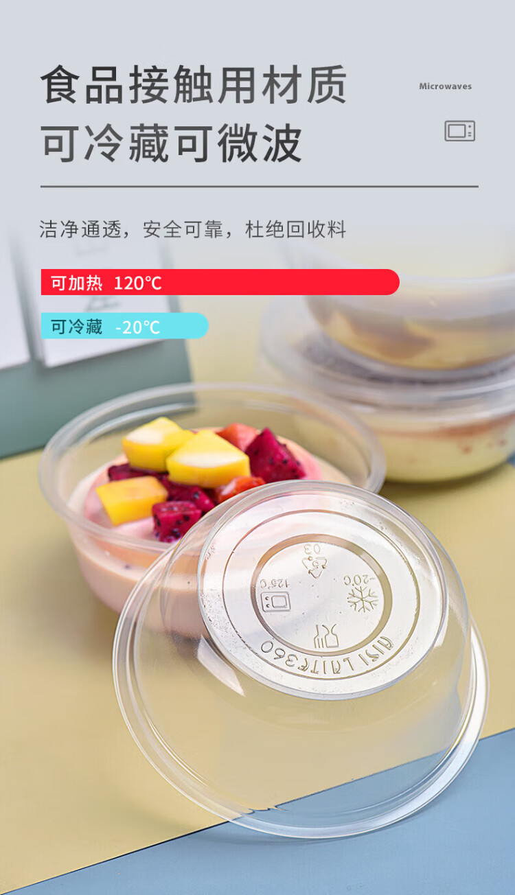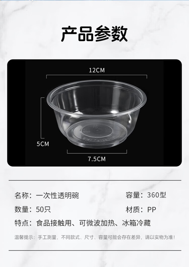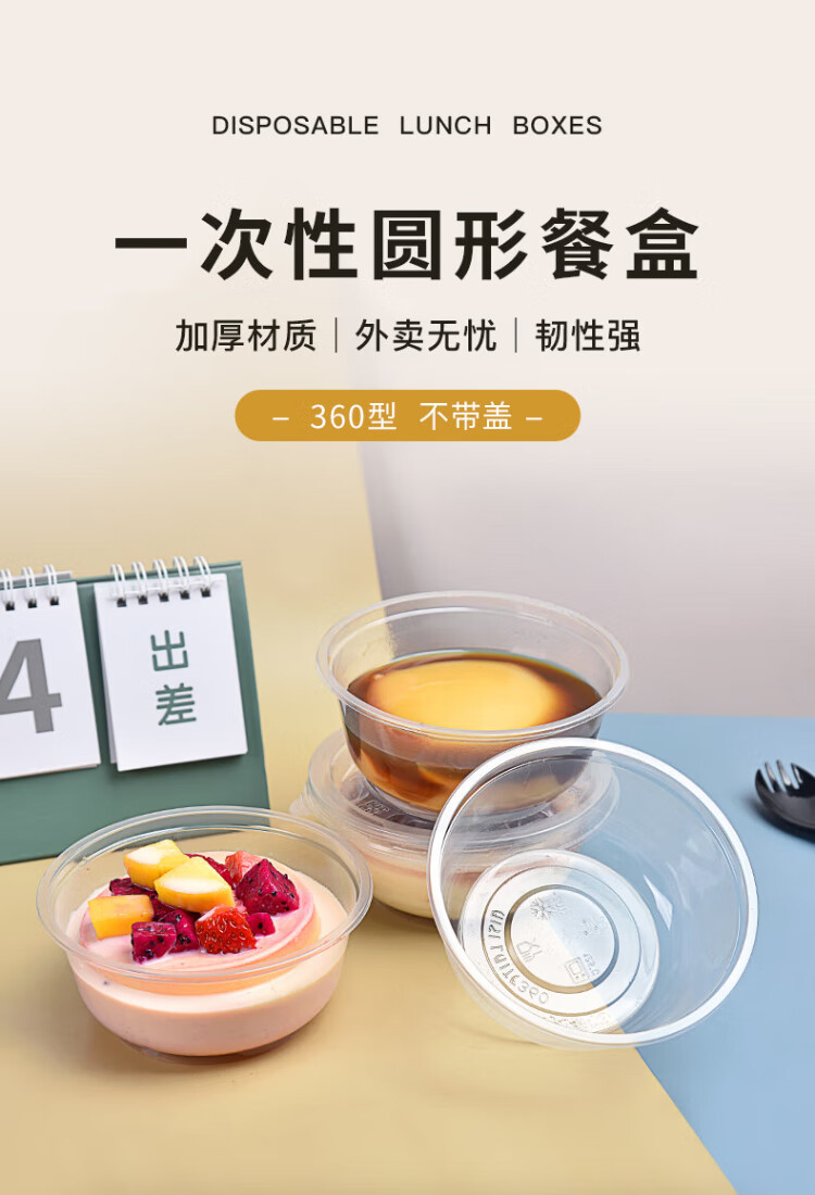 Temeiju disposable lunch box, round lunch box, picnic packing box, transparent soup bowl, ice powder bowl without lid, 50 pieces, type 360