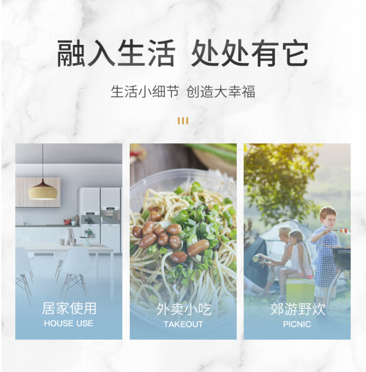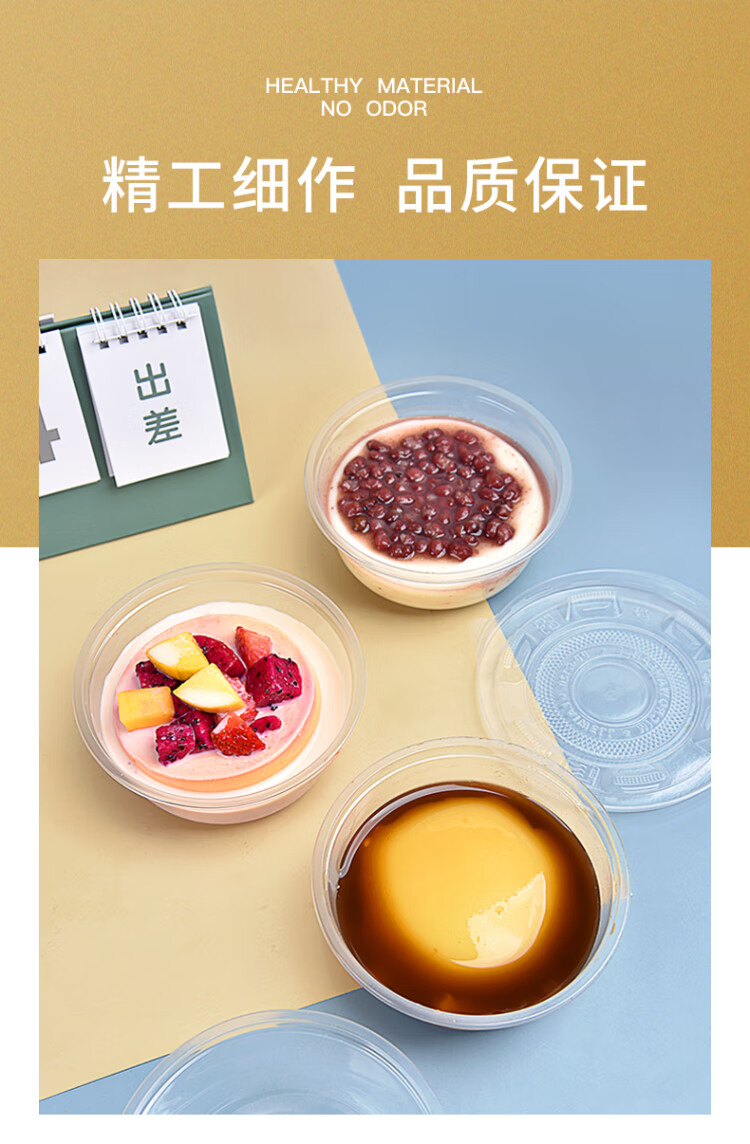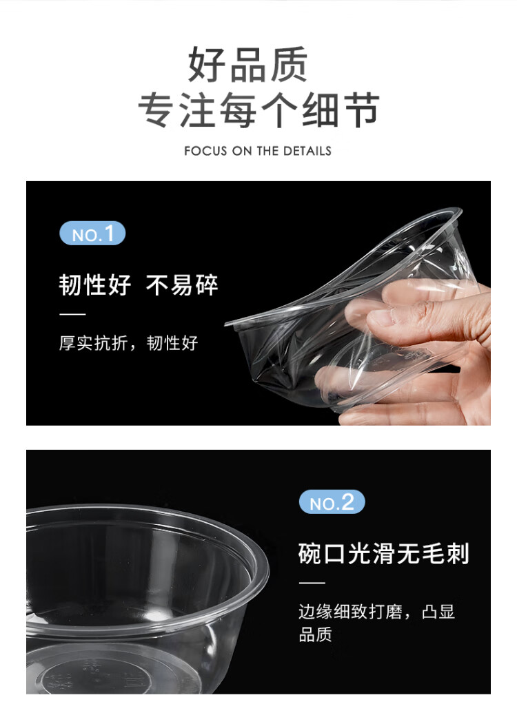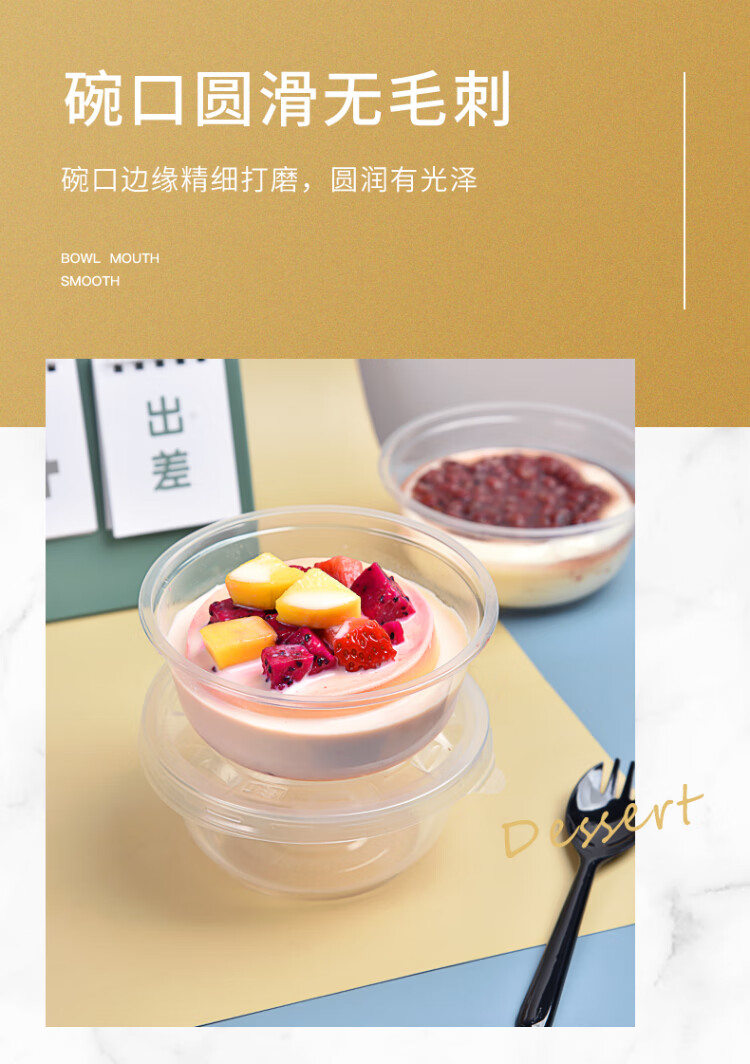 Temeiju disposable lunch box, round lunch box, picnic packing box, transparent soup bowl, ice powder bowl without lid, 50 pieces, type 360