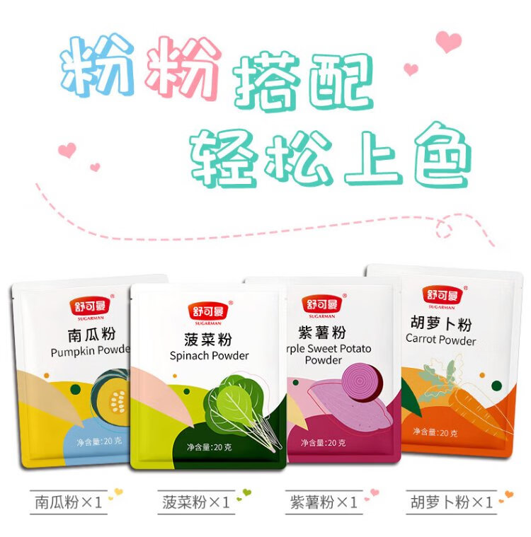 Schukoman Pure Fruit and Vegetable Powder 20g*4 Color Set No Added Natural Pigment Colorful Dumplings and Steamed Buns Baking Coloring Powder
