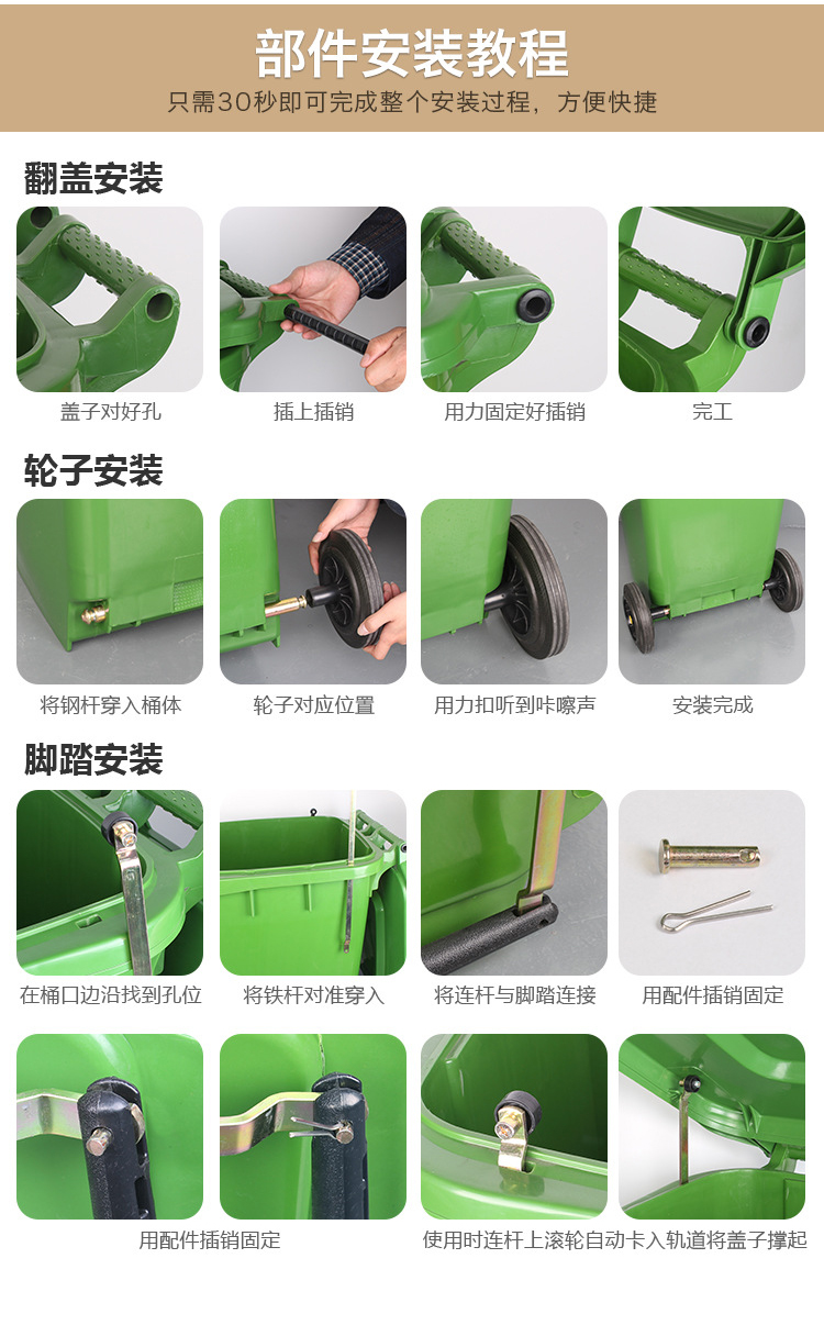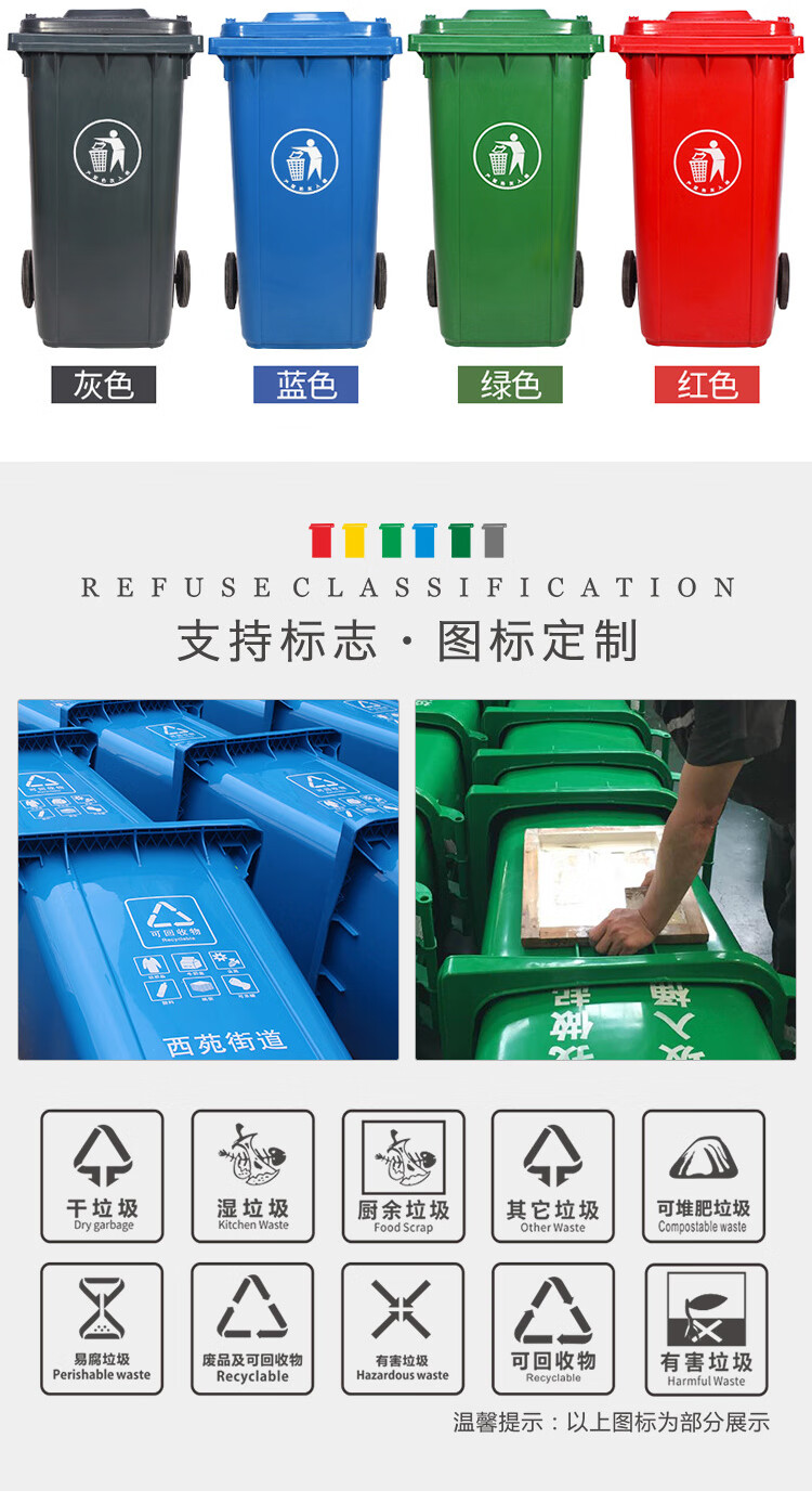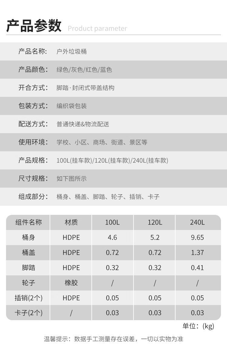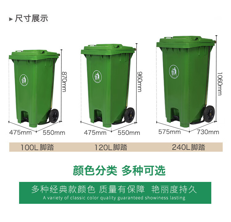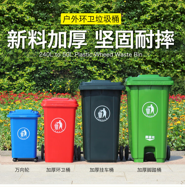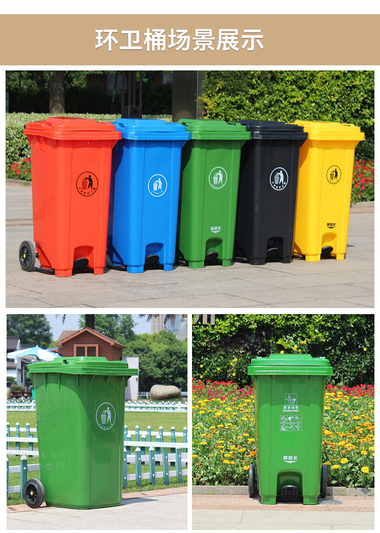 Hasdick gray 120L large outdoor large trash can trailer with wheels and pedals sanitation hotel kitchen waste classification thickened large capacity plastic outdoor property HKZ-152