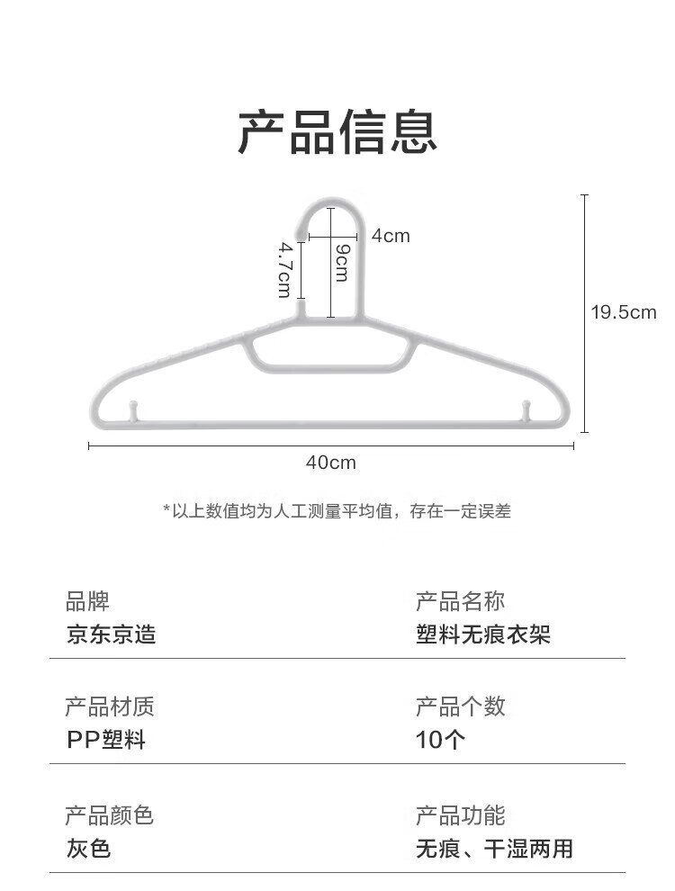 Made in Tokyo, traceless clothes hangers, plastic clothes hangers, wet and dry clothes supports, non-slip clothes hangers for student dormitories, 10 gray