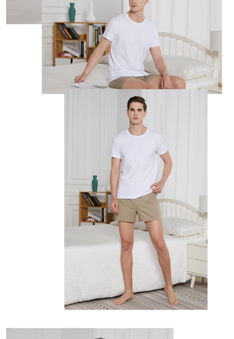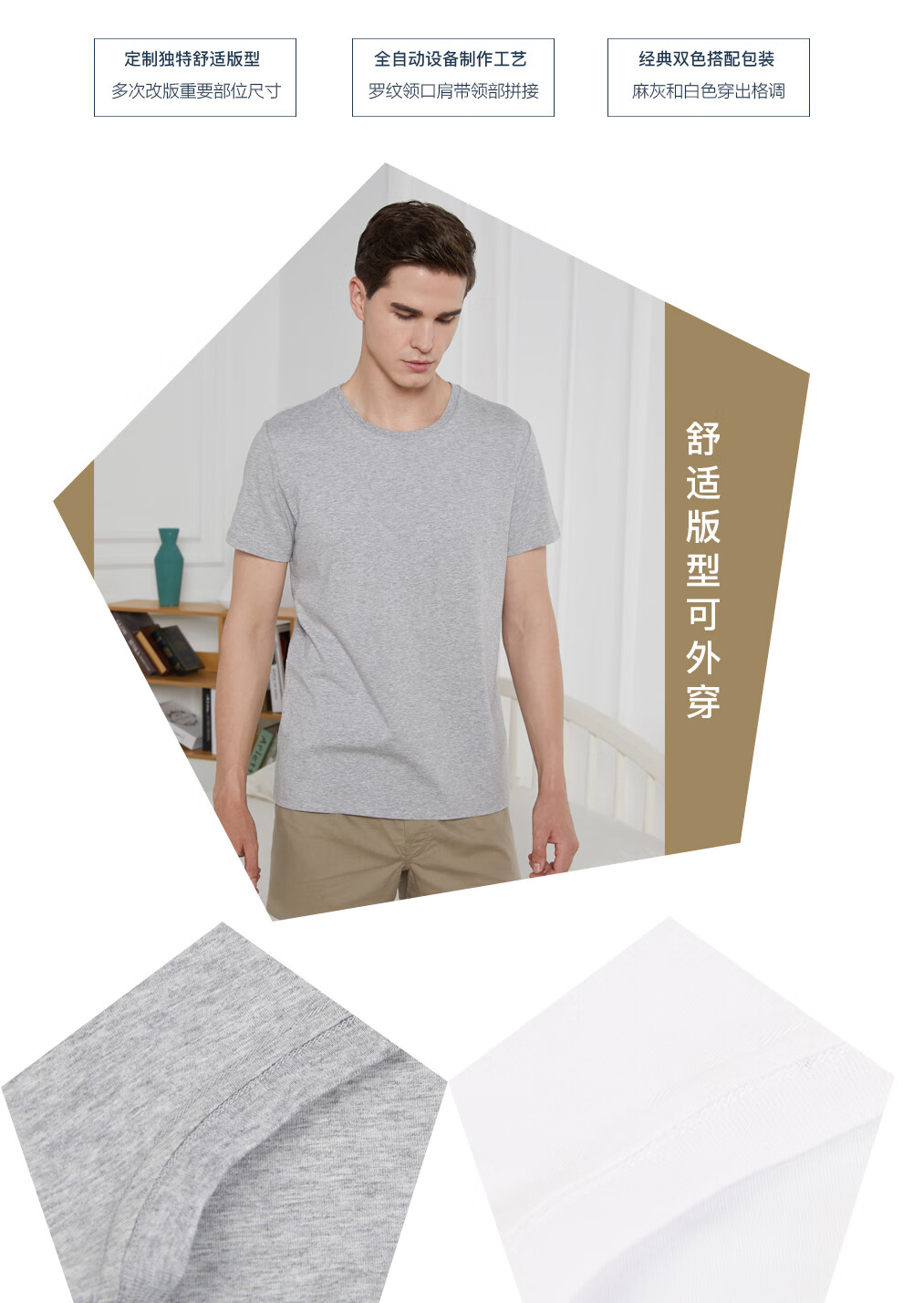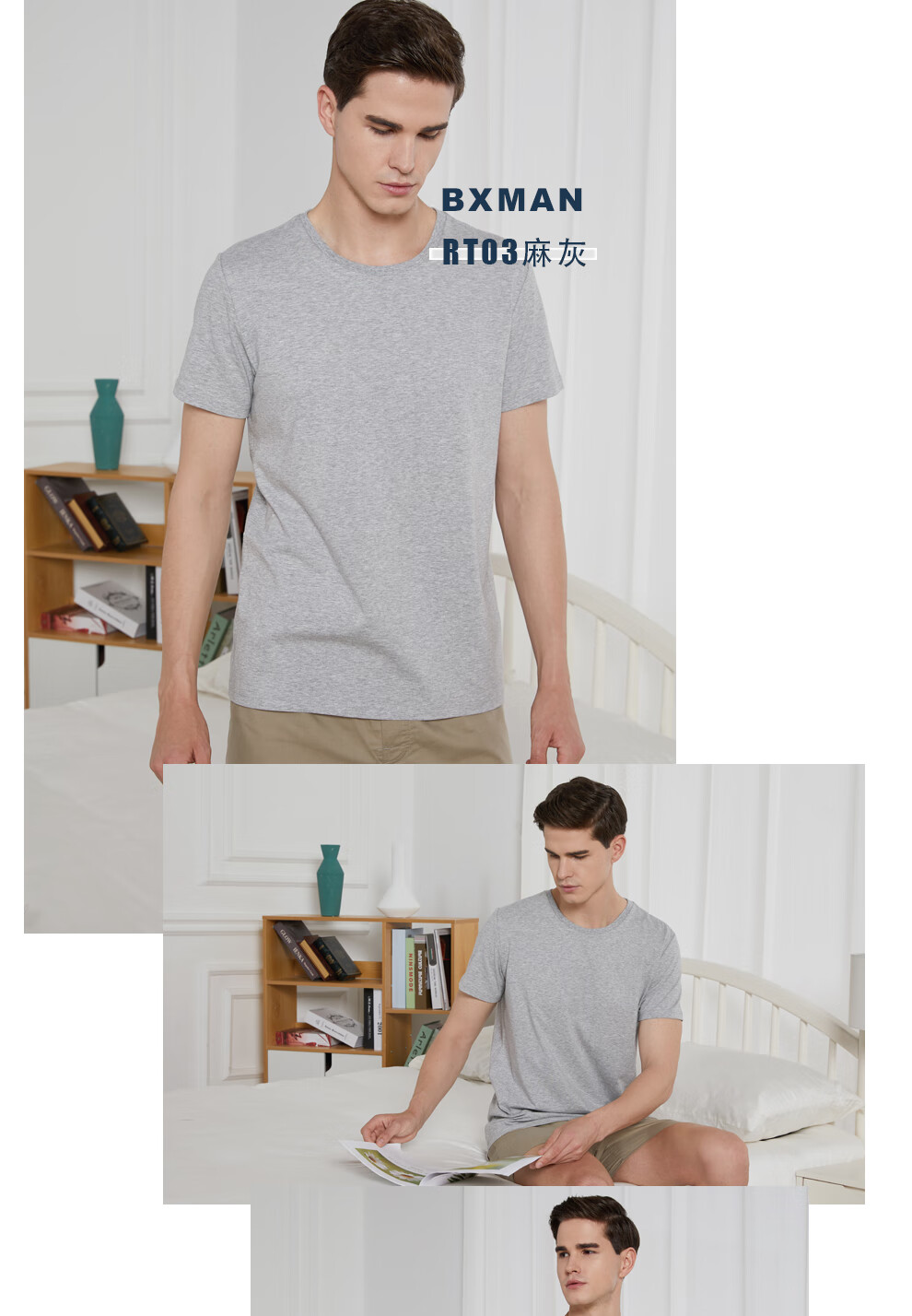 BXMAN autumn and winter short-sleeved men's underwear cotton base shirt spandex stretch crew neck shirt comfortable 2-piece white 175L