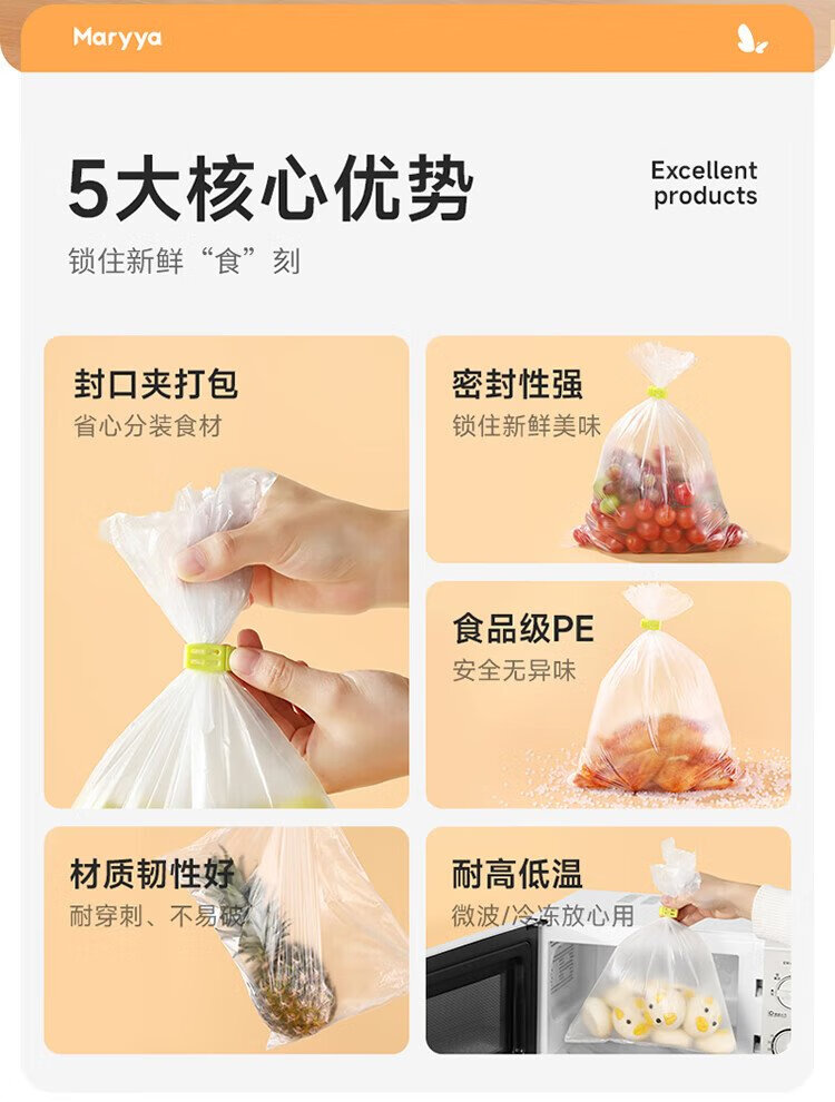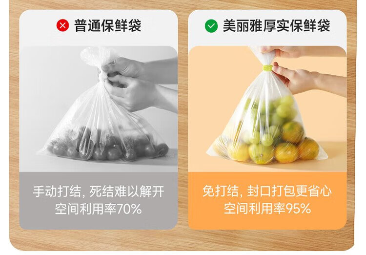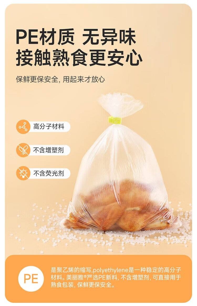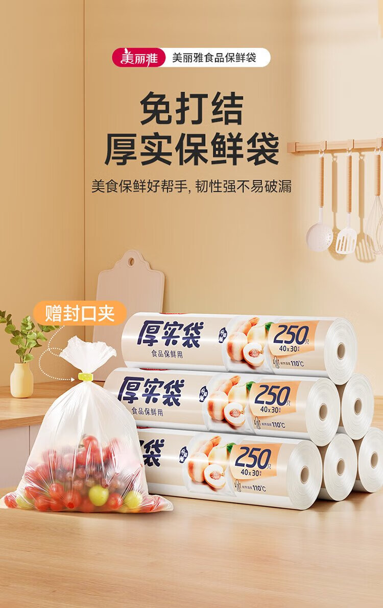 Meiya thick fresh-keeping bags food grade point-break disposable plastic bags plus size 250 pieces 40*30cm