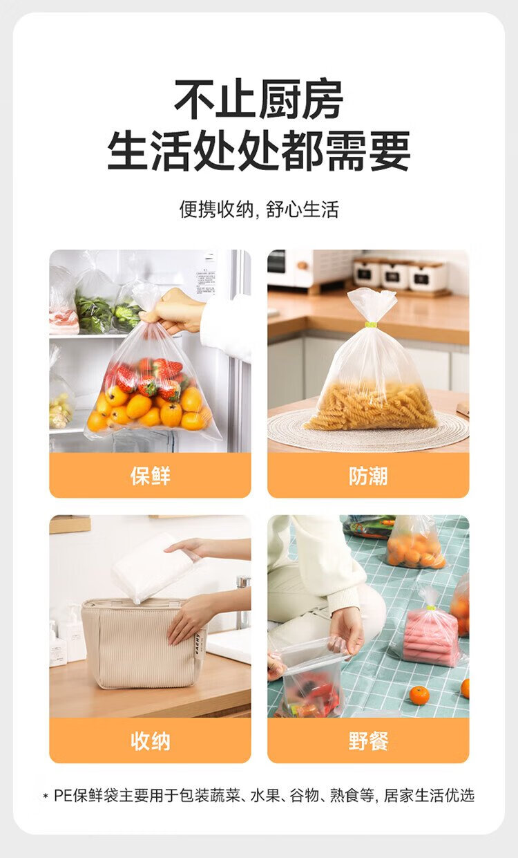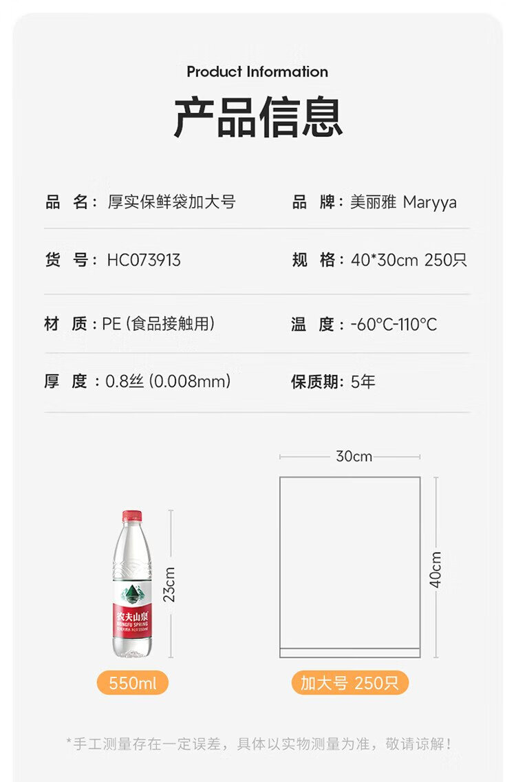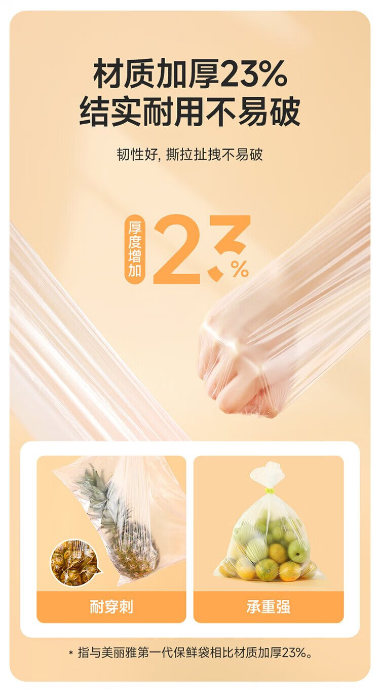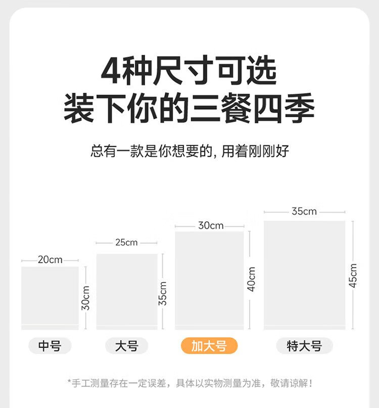 Meiya thick fresh-keeping bags food grade point-break disposable plastic bags plus size 250 pieces 40*30cm