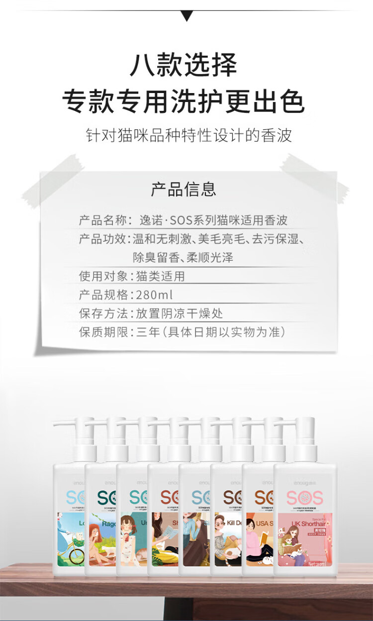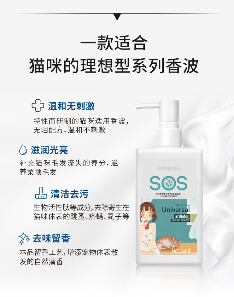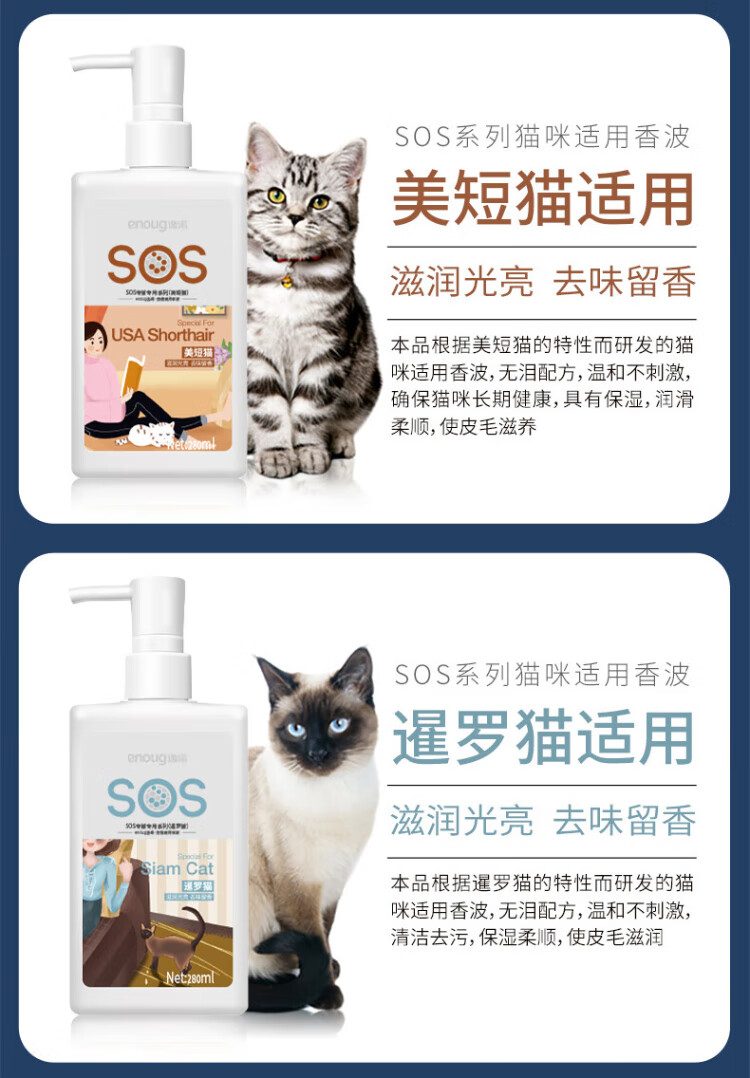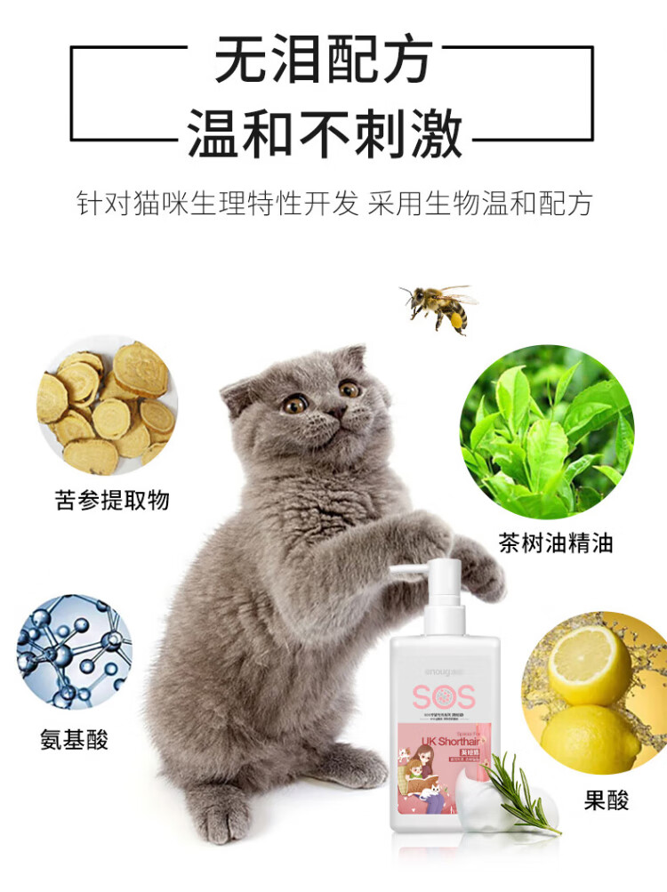Enoug SOS cat shower gel pet shower gel removes stains, removes fleas and brightens hair shorthair cat shampoo shower gel 280ml