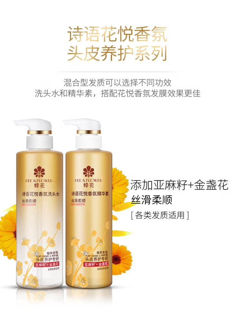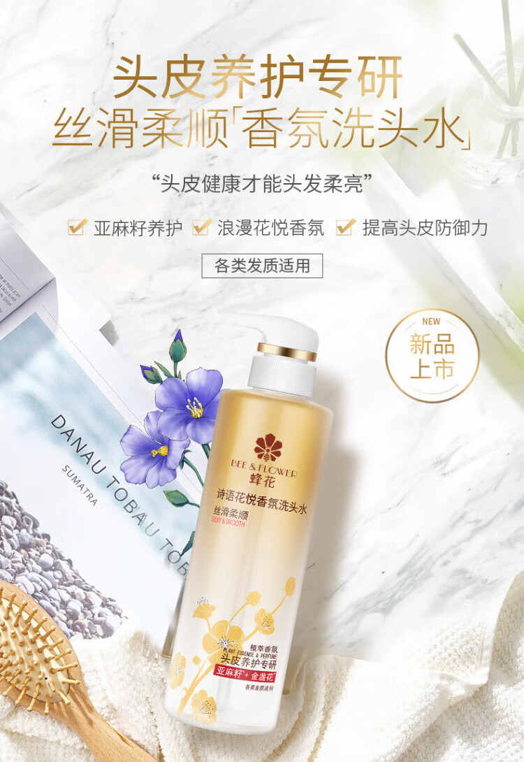 BEE&FLOWER Poetry Flower Fragrance Shampoo Flax Seed + Calendula Extract Shampoo (silky and smooth) 480ml