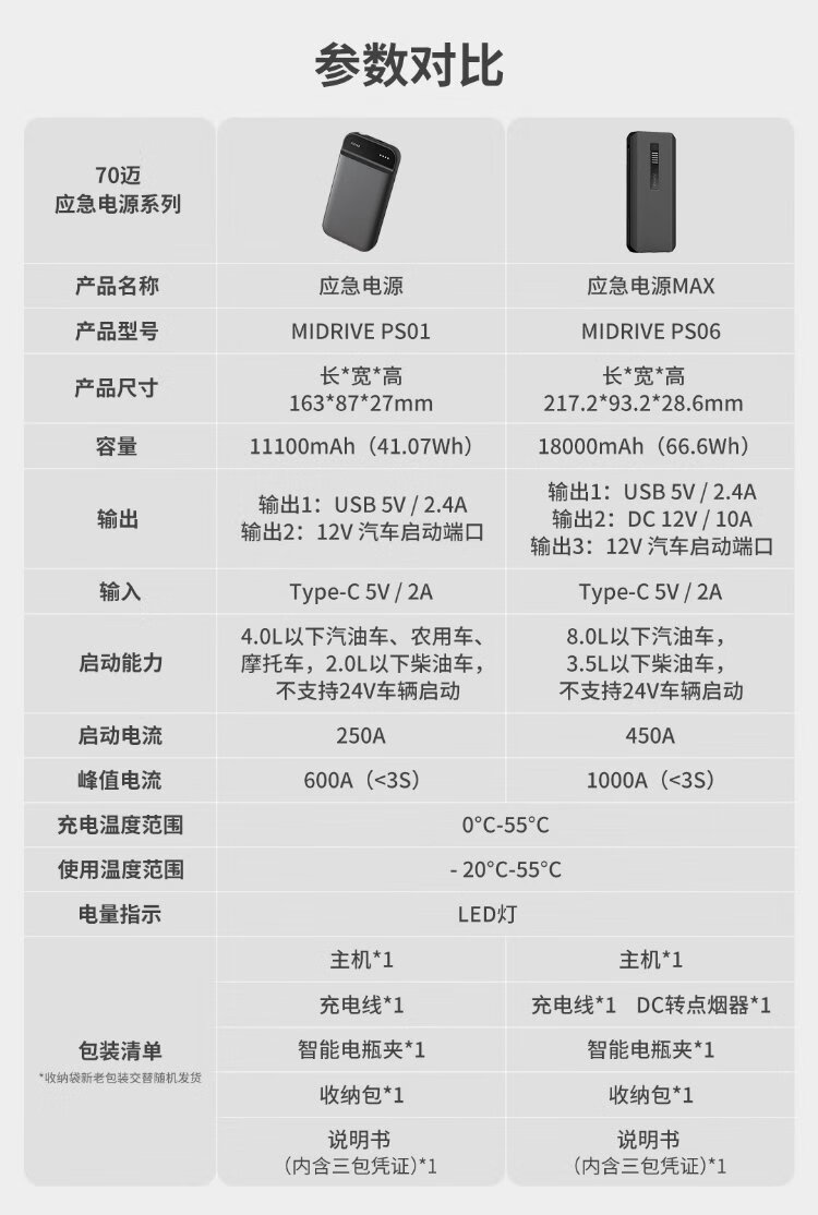 70mai car emergency starting power supply, car battery starter, car charging, mobile phone power supply