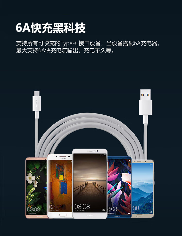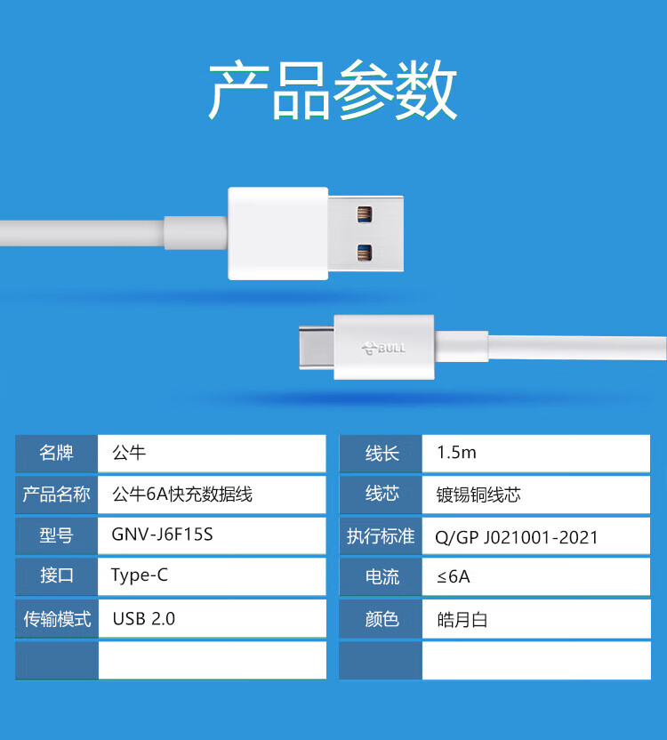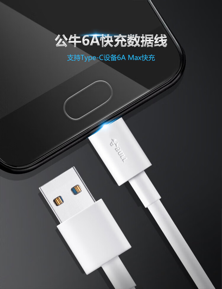 BULL Android/TYPE-C 6A fast charging data cable/USB-C/1.5M/Applicable to Huawei/Xiaomi/vivo/OPPO