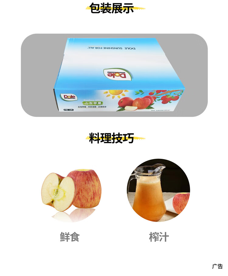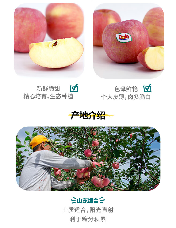 Dole Shandong Red Fuji Apple 4.5kg, single fruit 160g, fresh fruit, shipped directly from the source, free shipping