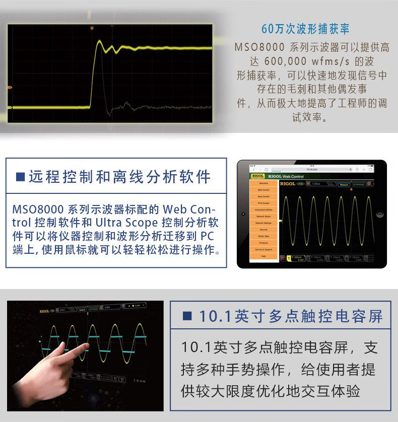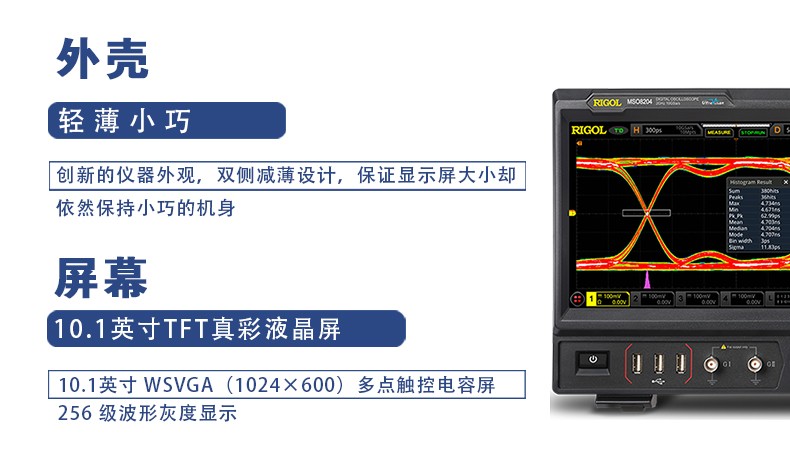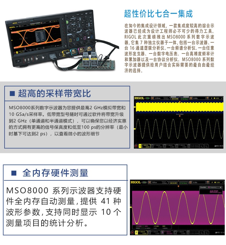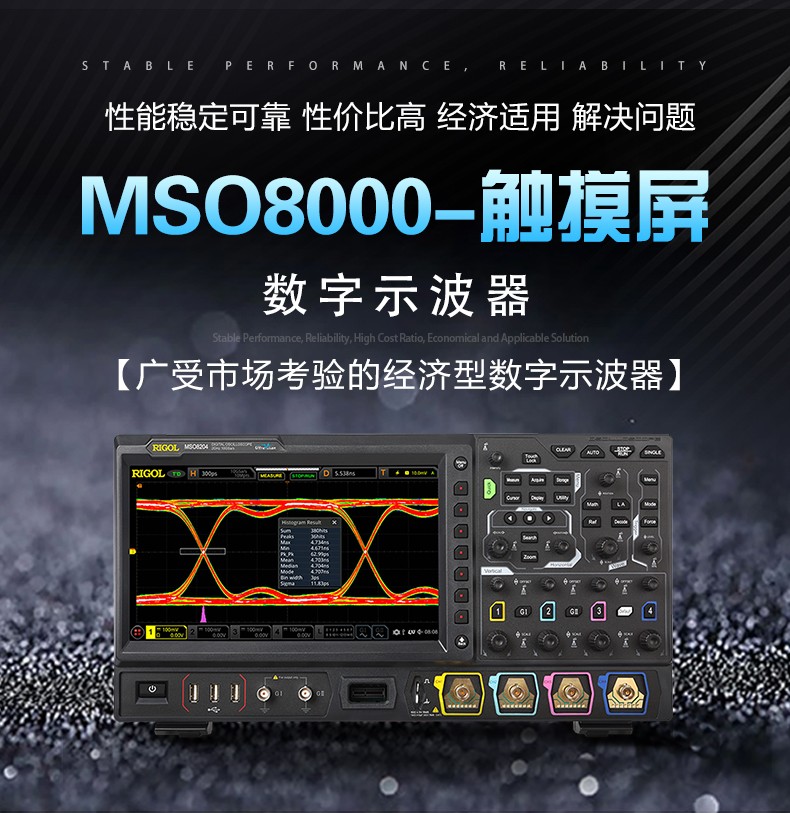 RIGOL Puyuan MSO8104 digital oscilloscope 1GHz four channels sampling rate 10GSa/s eye diagram analysis