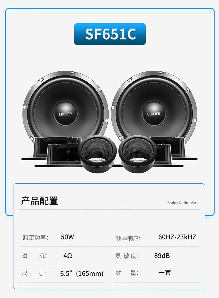 Edifier car audio modification SF651E+S651B four-door 6-speaker set 6.5-inch car speaker
